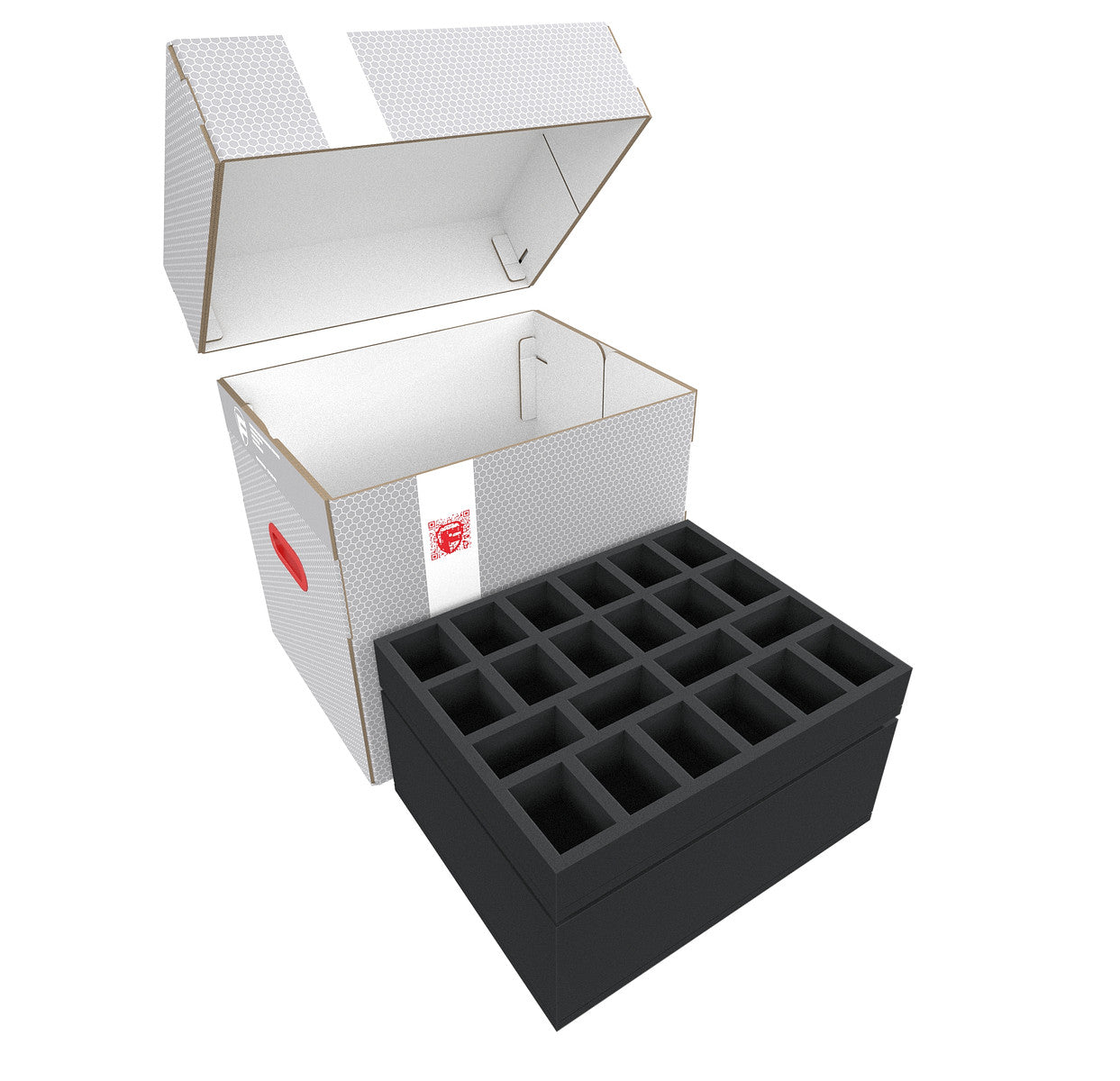 Diese robuste Lagerbox FSLB310 mit passenden Feldherr Schaumstoffeinlagen eignet sich hervorragend dafür, bis zu 60 Kriegermodelle deiner World Eaters aufzubewahren und gut geschützt zu transportieren.