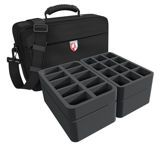 Die Feldherr-MEDIUM-Tasche ist aus besonders strapazierfähigem Material gefertigt. Gepolsterte Seitenteile und ein verstärkter Boden sorgen dafür, dass die Miniaturen auch beim Transport mit Auto oder Bahn bestens geschützt sind.