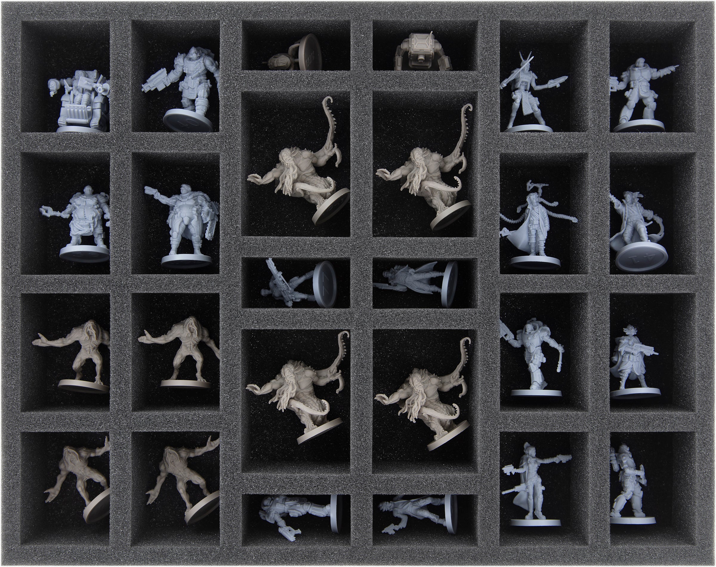 - 1 Full-Size Schaumstoffeinlage mit 32 Fächern für Miniaturen (FSMEDS040BO)