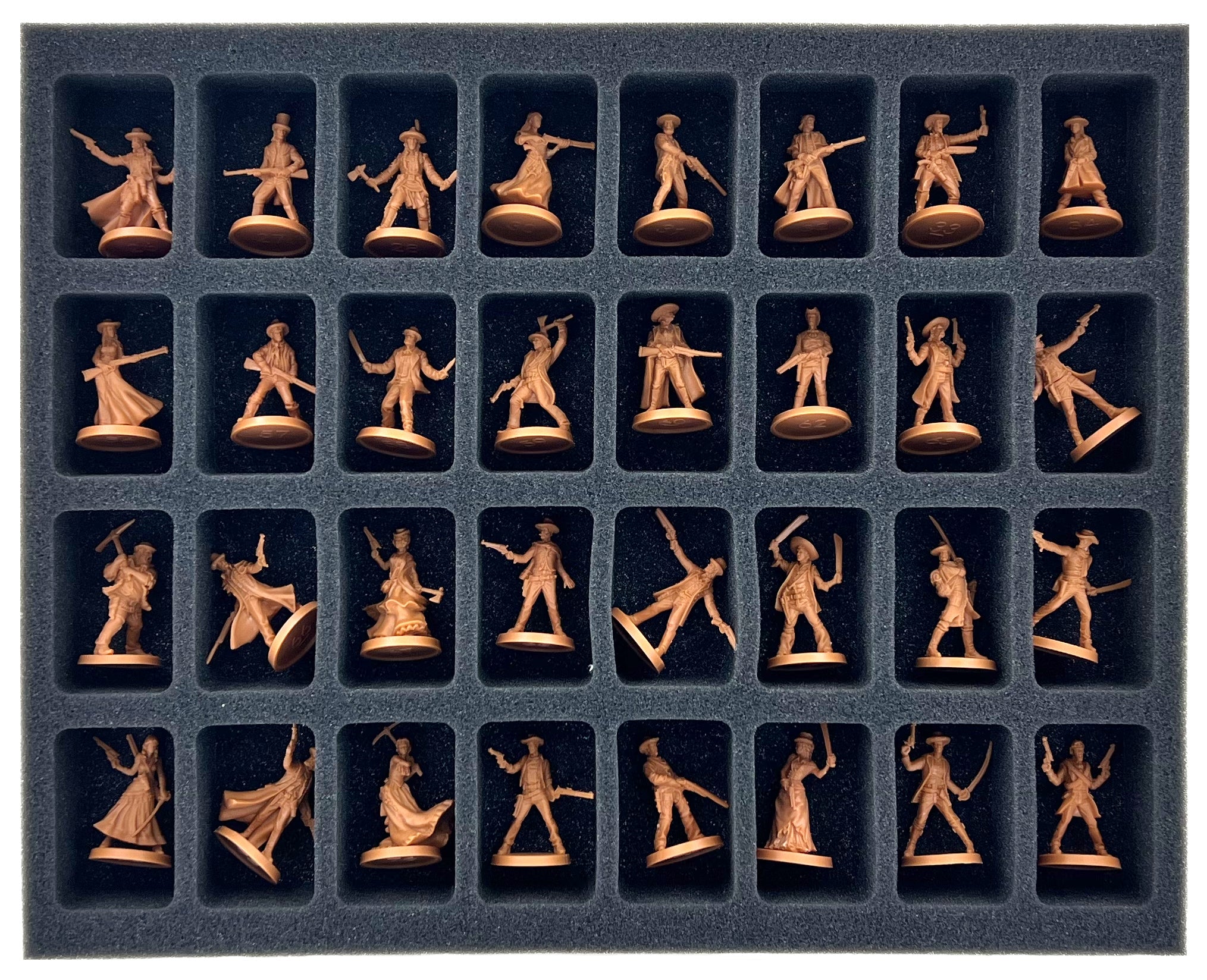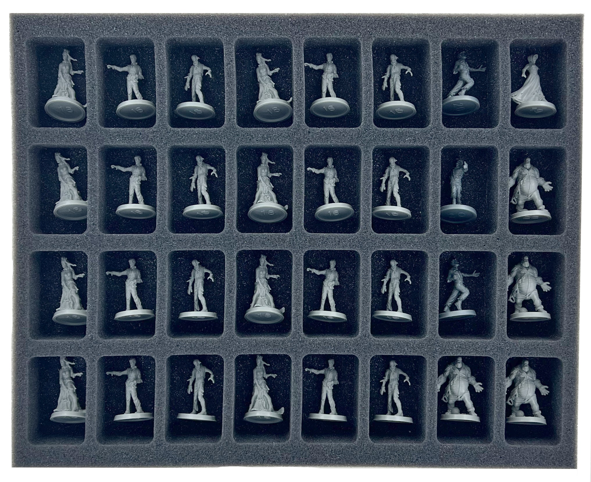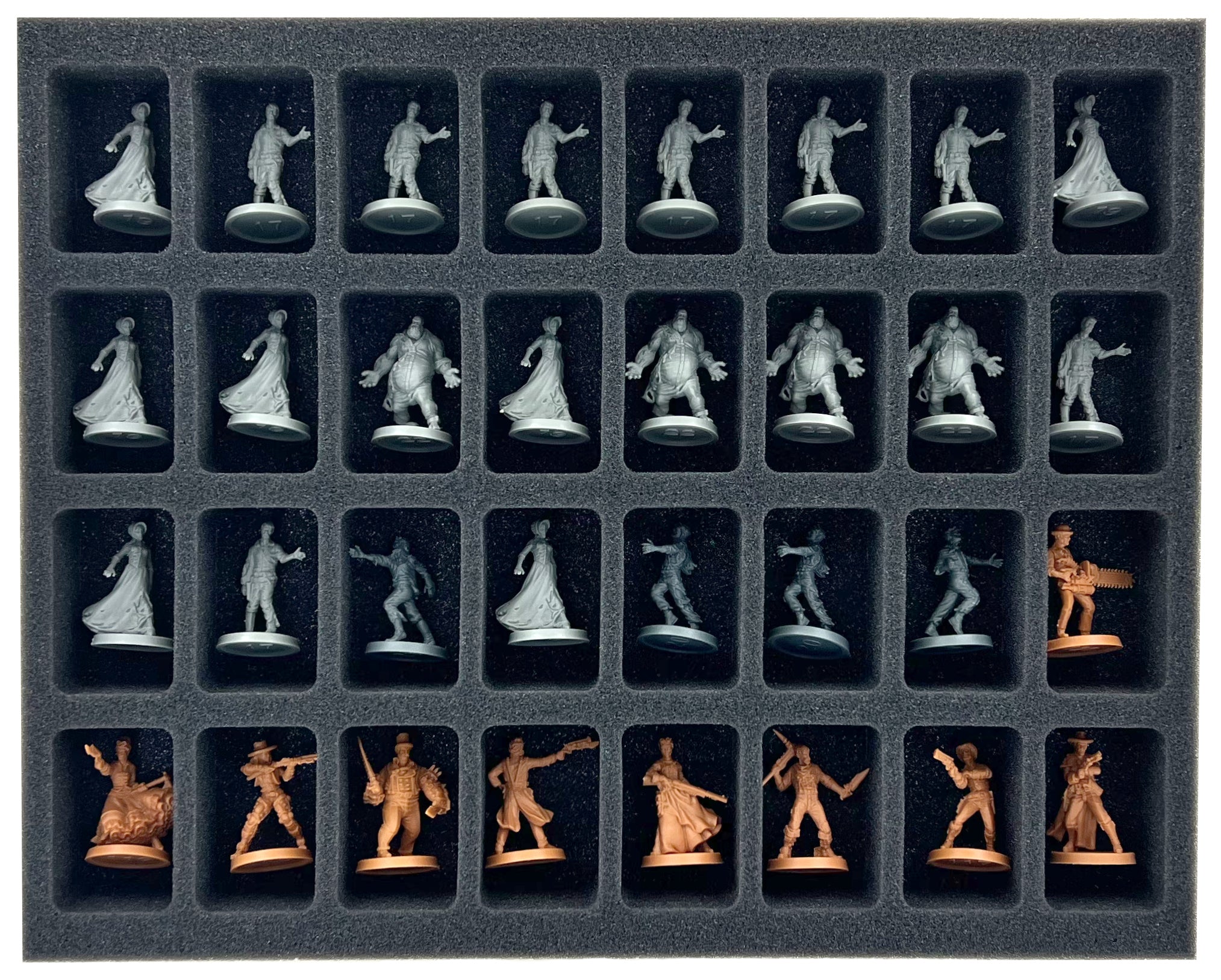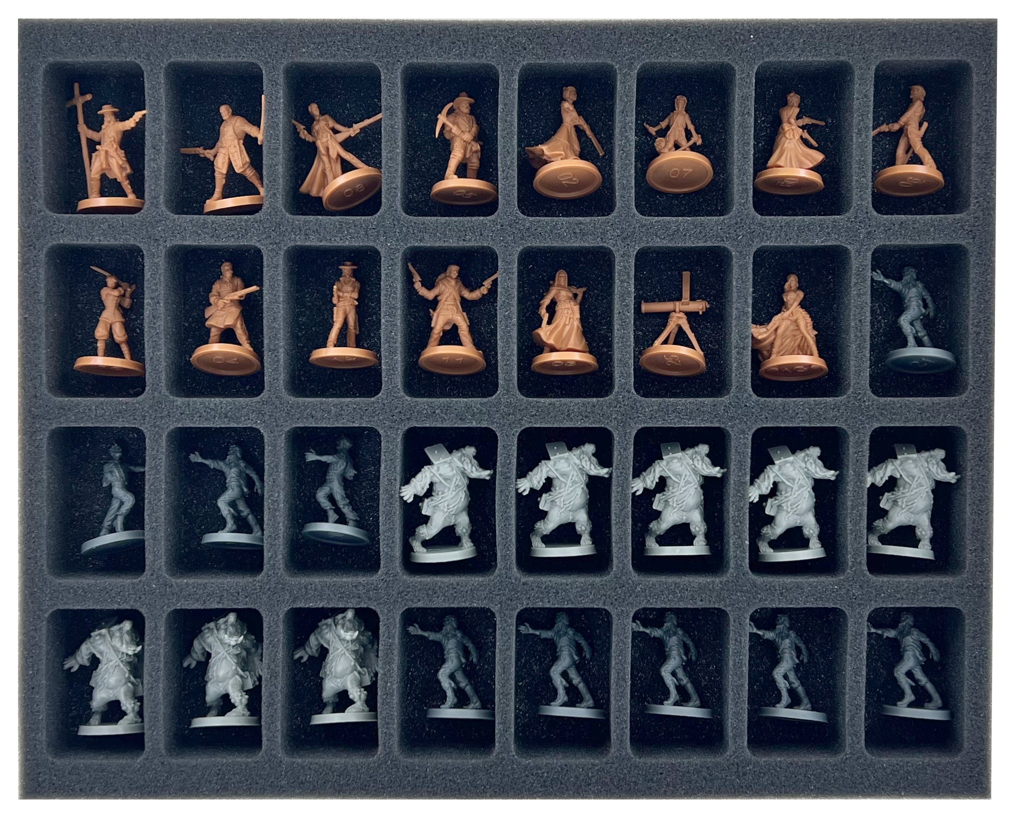 - 6 Full-Size Schaumstoffeinlagen mit jeweils 32 Fächern für Standardminiaturen wie Billy the Kid, Dotty, Gunslinger Walker und Miniaturen mit ähnlichen Abmessungen (FSMEDS040BO)