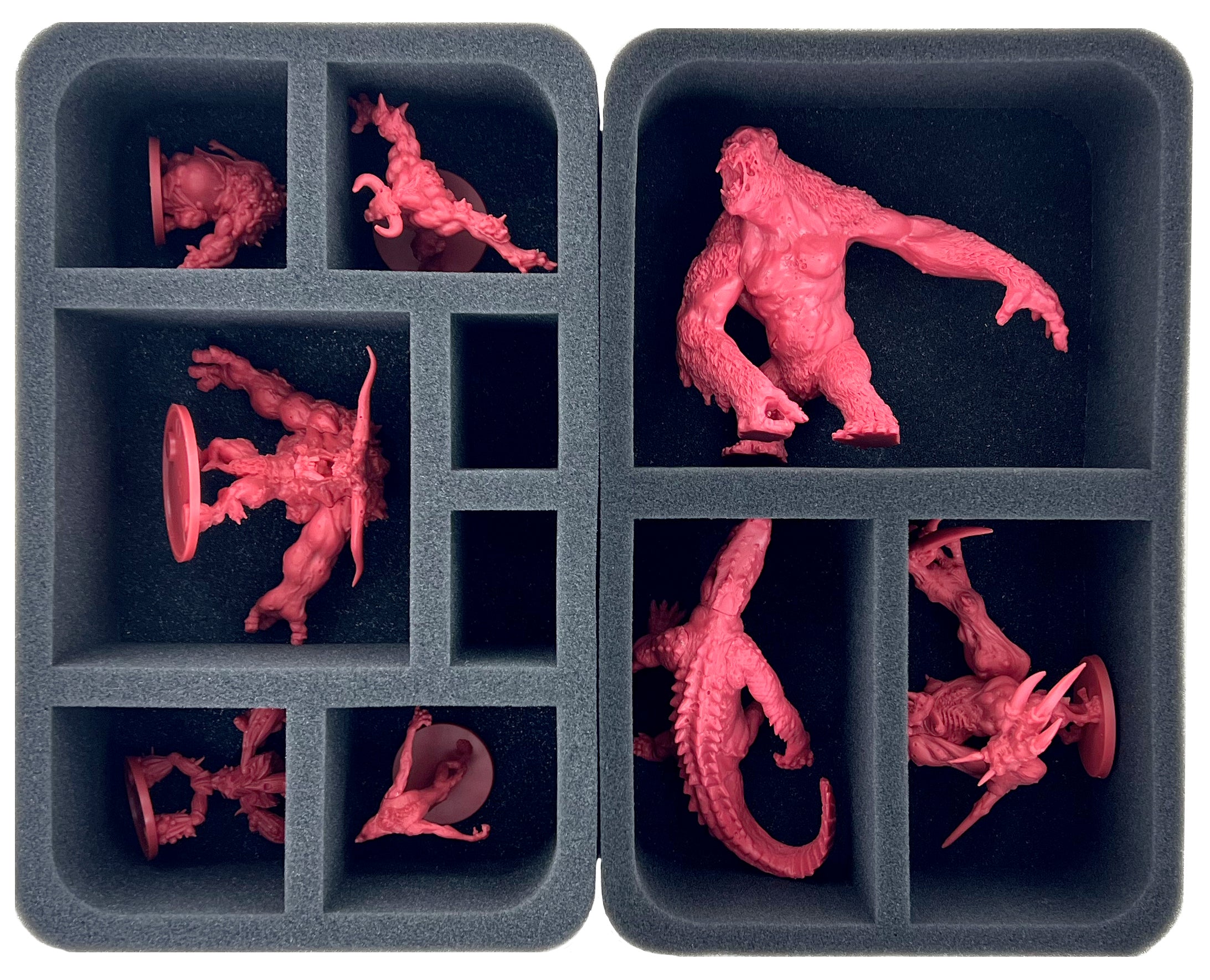 - 1 Half-Size Schaumstoffeinlage mit drei Fächern für riesige Miniaturen wie Abominape, Crocosaur, Rotten Claw und Miniaturen mit ähnlichen Abmessungen (HSCR080BO)