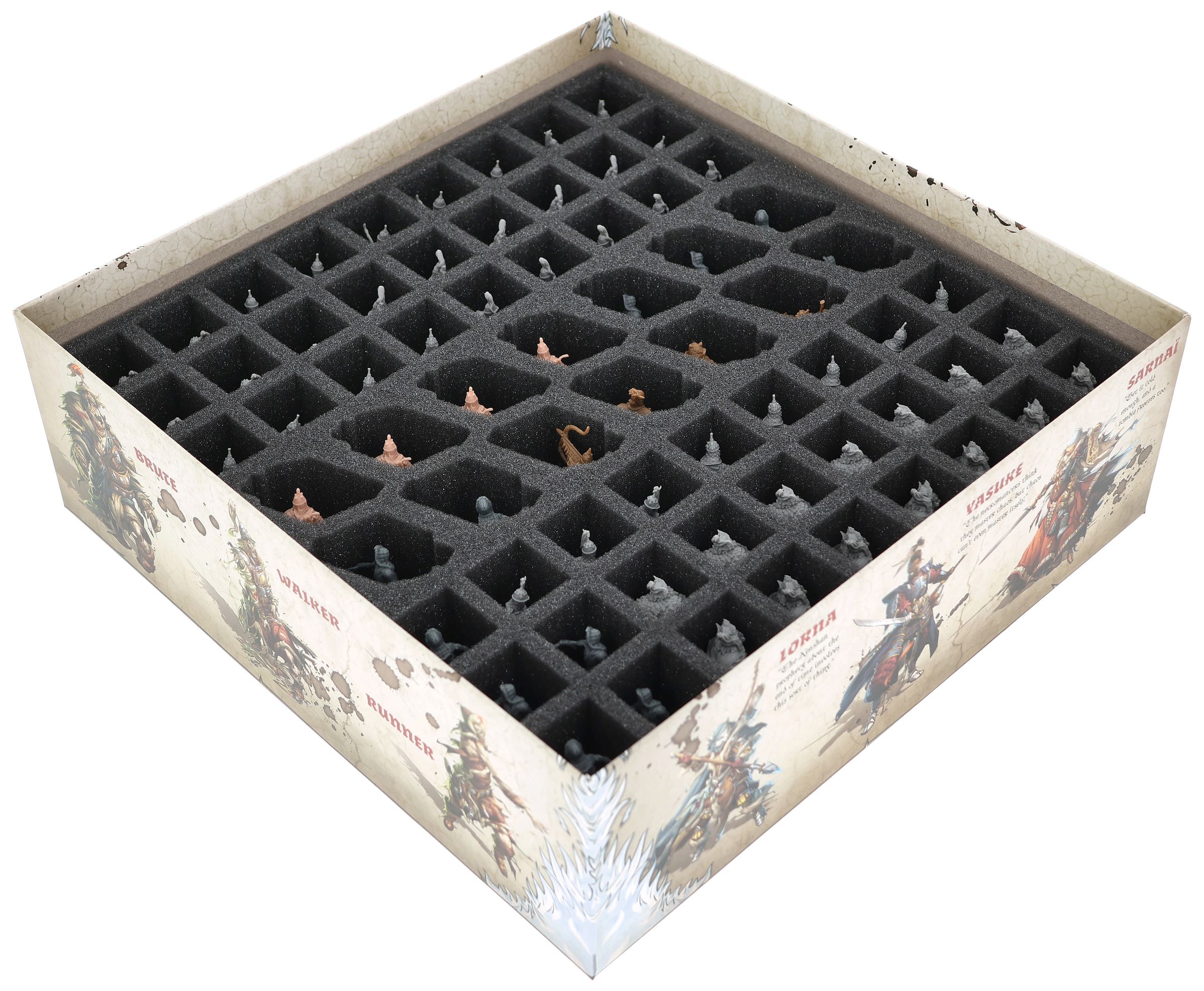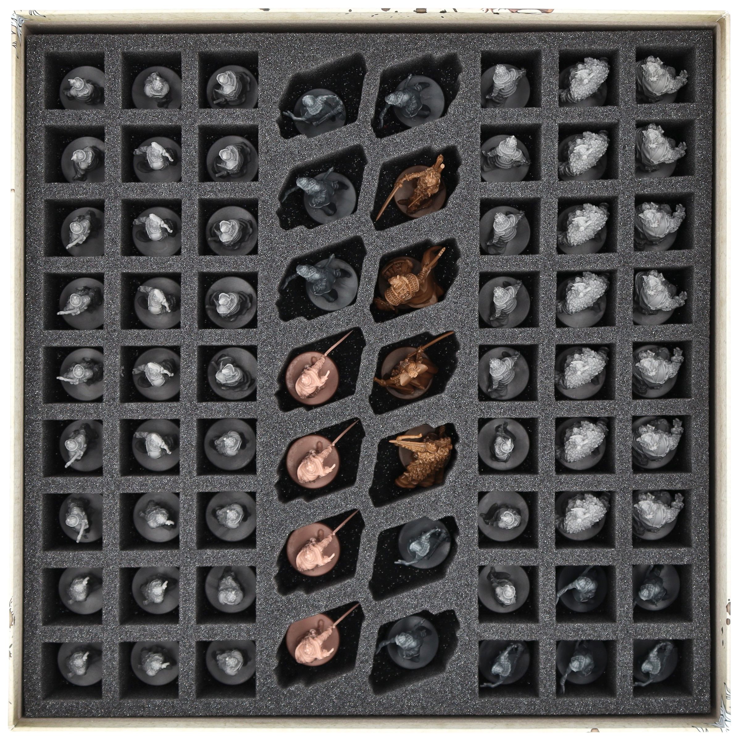 Ob wandelnde Leichen oder Verteidiger von Wintergrad – in den präzise zugeschnittenen Fächern findet jede Miniatur ihren festen Platz. Selbst empfindliche Details wie Schwerter oder Hutschmuck sind sicher vor Beschädigungen geschützt. Auch bemalte Figuren bleiben unversehrt – ganz ohne Farbabrieb.