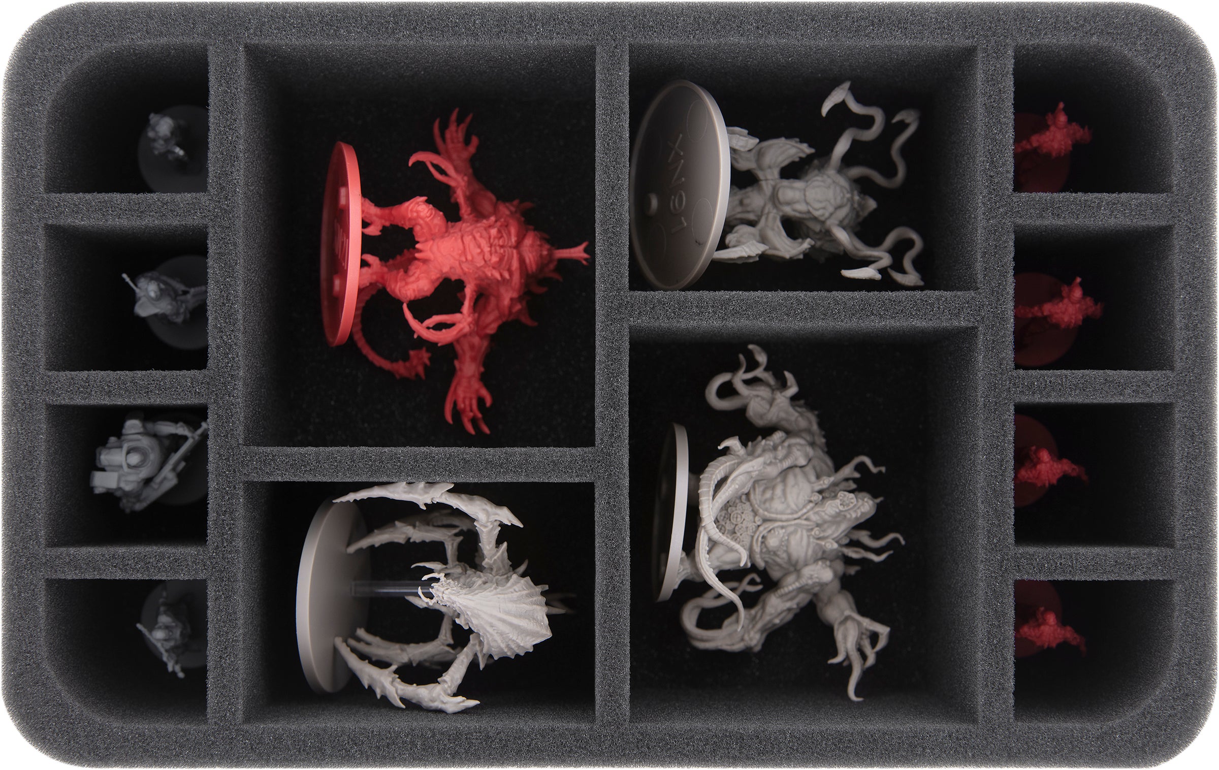 Deine Figuren bleiben dadurch auch beim Transport an ihrem Platz, rutschen nicht umher und sind, umgeben von weichem Schaumstoff, optimal vor Beschädigung geschützt. Die Tentakel und Klauen der Xenos bleiben hier genauso ganz, wie die Waffen deiner Helden.