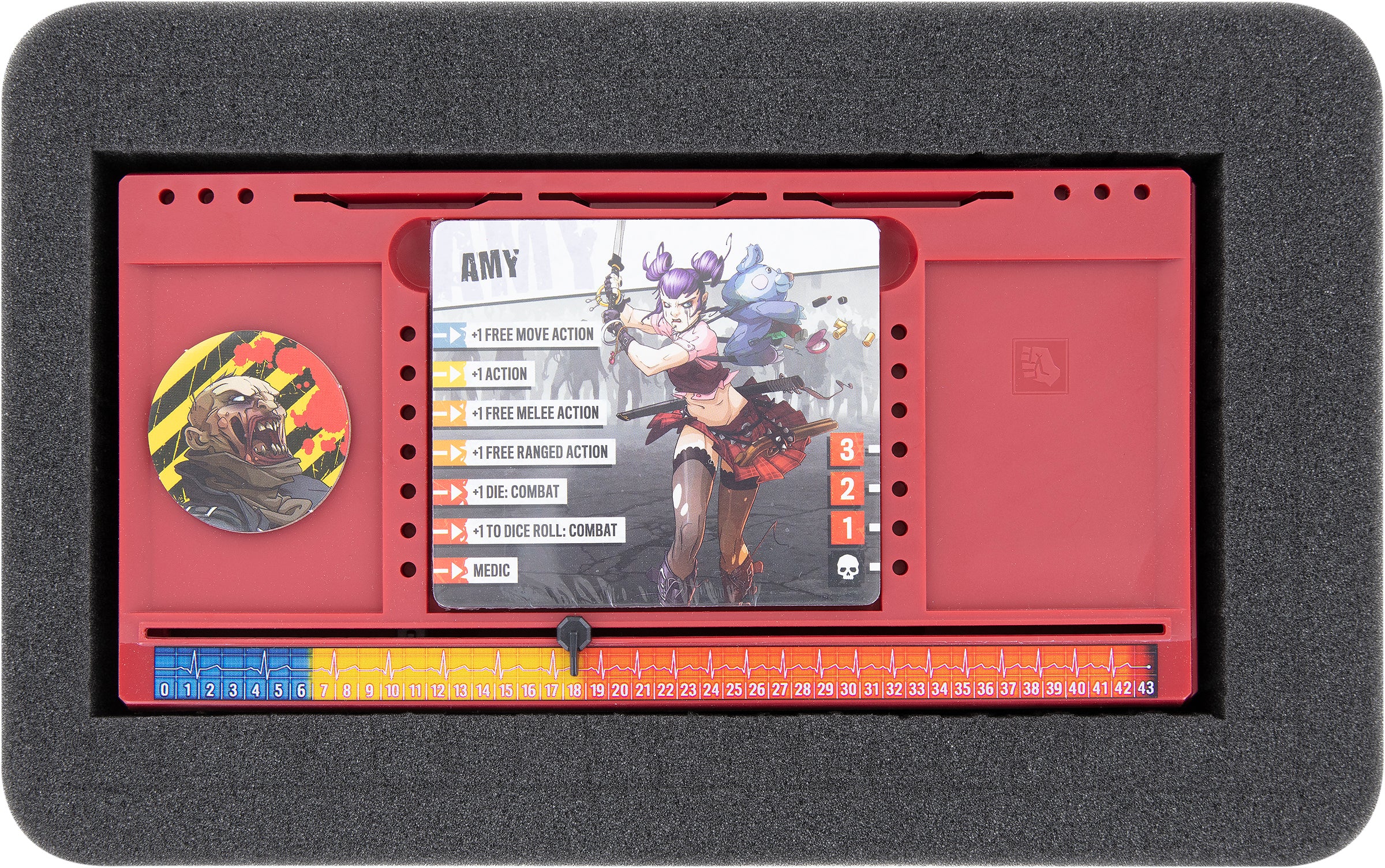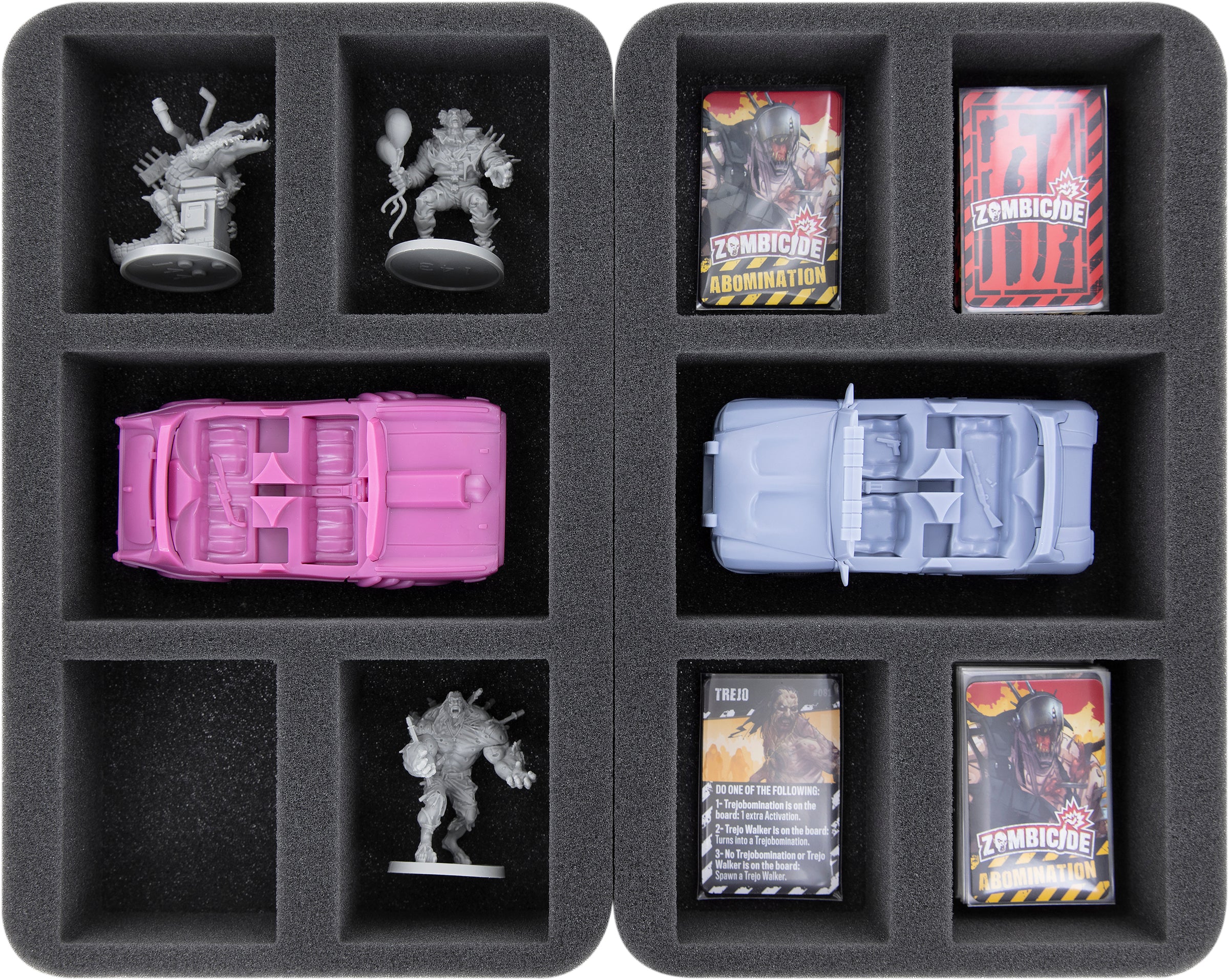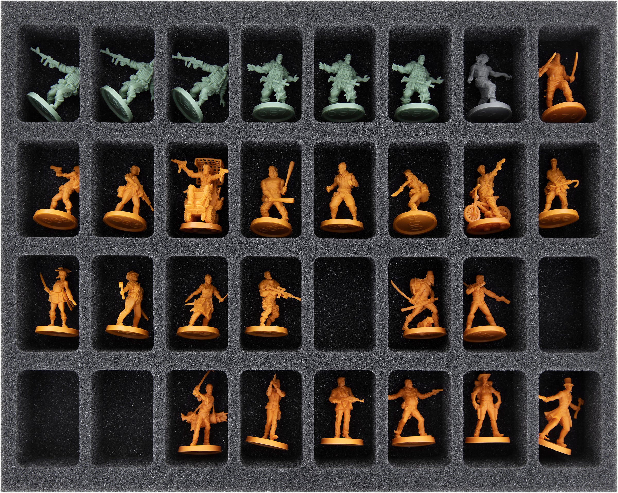 Egal, ob es sich um Danny Trejo oder einen Fettbrocken handelt, jede der 236 Miniaturen erhält ein passendes Fach. Dank des passgenauen Zuschnitts rutschen die Figuren nicht umher und verbleiben selbst beim Transport durch eine Horde Untoter an ihrem Platz.