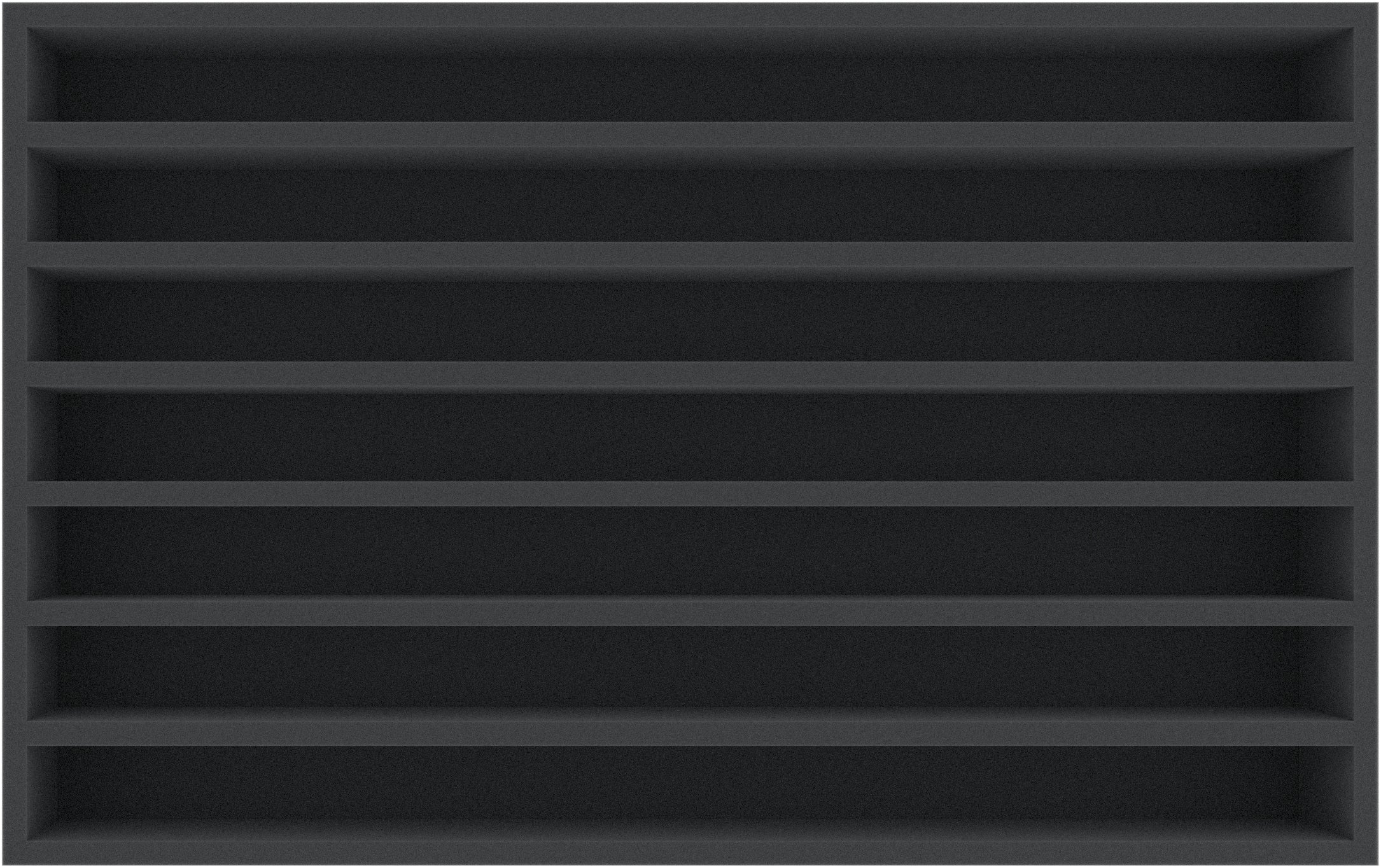 - Jedes der 7 Fächer ist 530 mm lang x 38 mm breit x 55 mm tief.