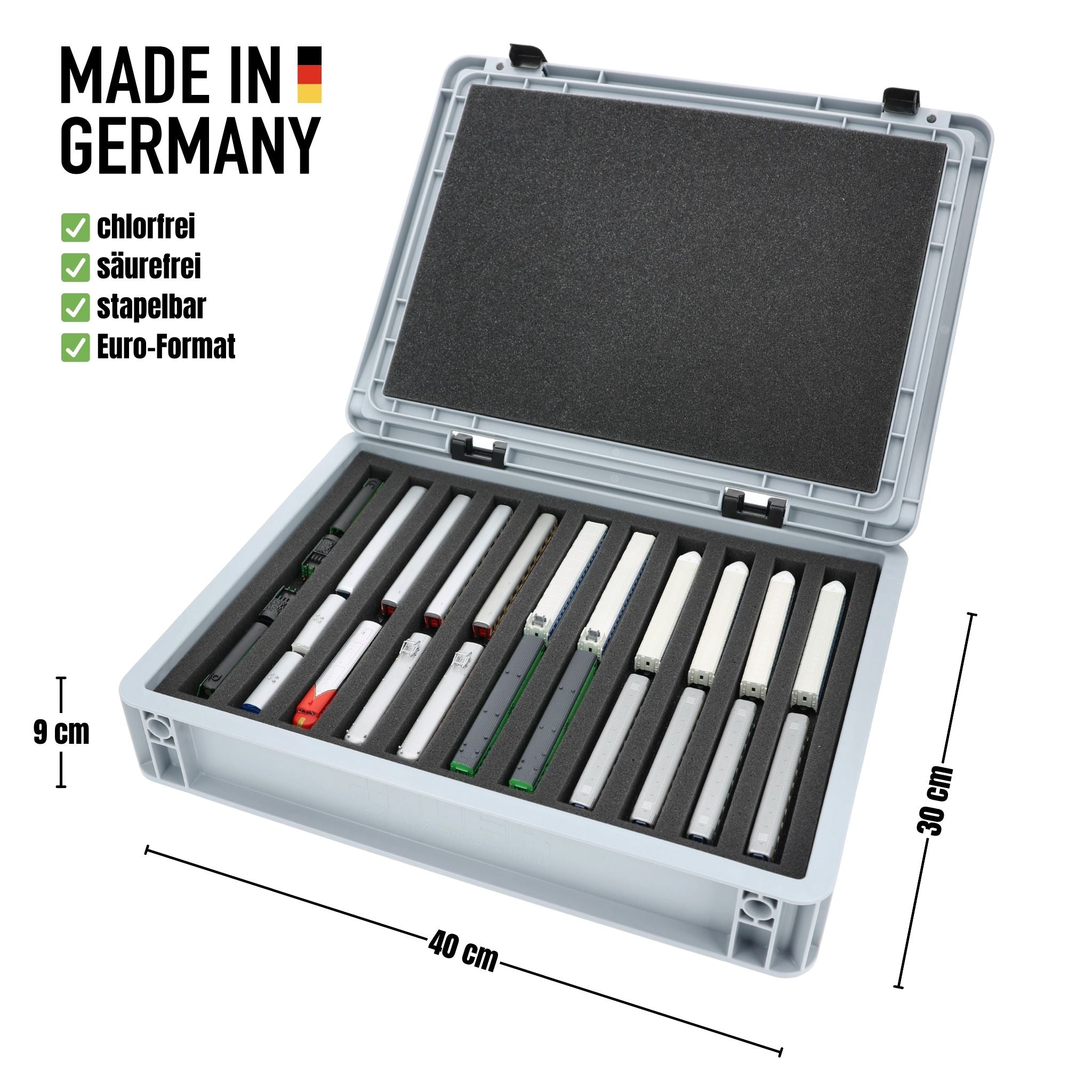 Feldherr Eurobox 40 x 30 cm Set für Modelleisenbahnen - Spur Z - 11 Fächer - Schaumstoffeinlage zur stehenden Aufbewahrung