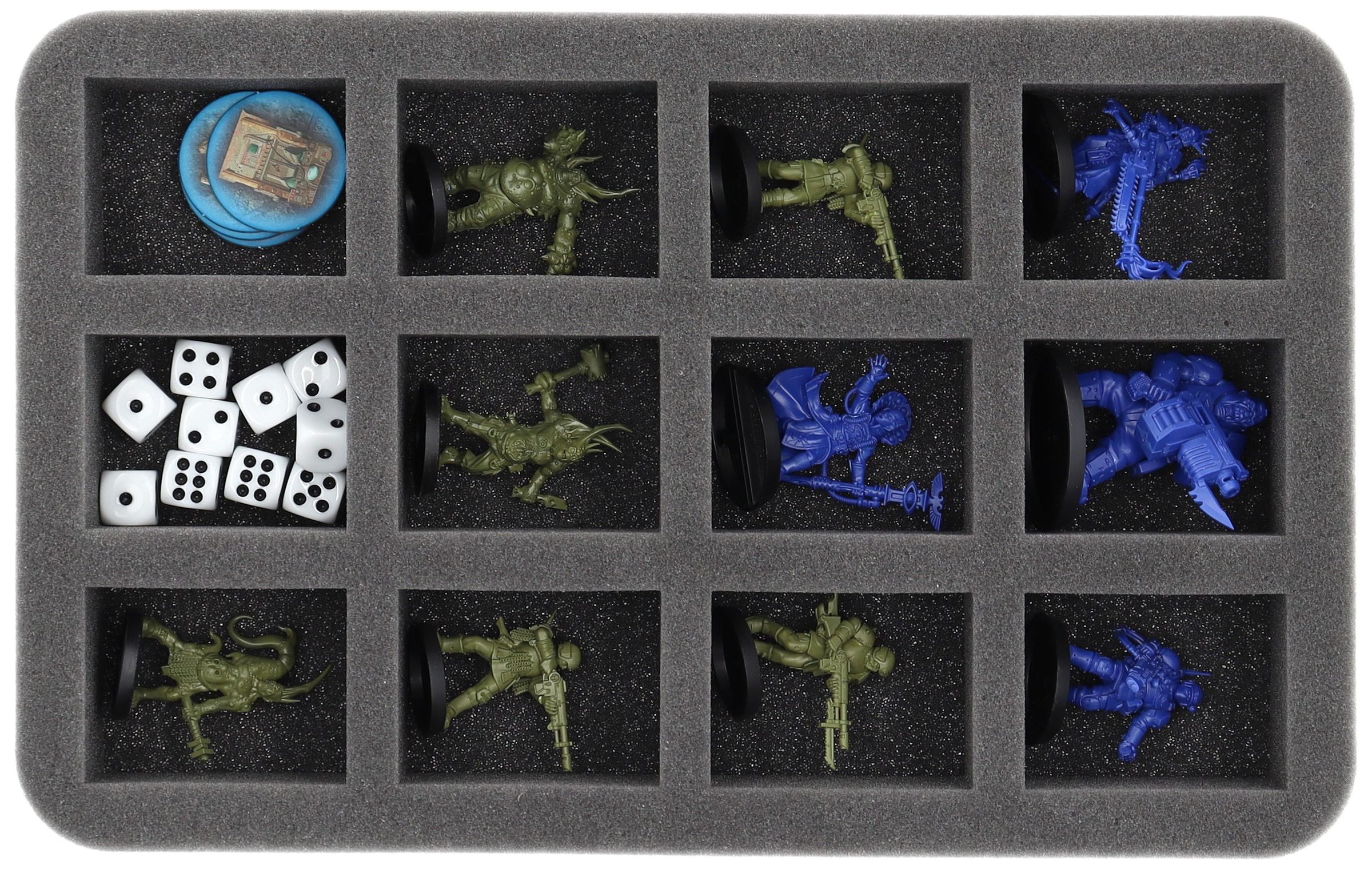 - 1 Half-Size Schaumstoffeinlagen mit 12 Fächern für Miniaturen wie Pox Walkers, Traitor Guardsmen und Miniaturen mit ähnlichen Abmessungen (HS050I012BO)