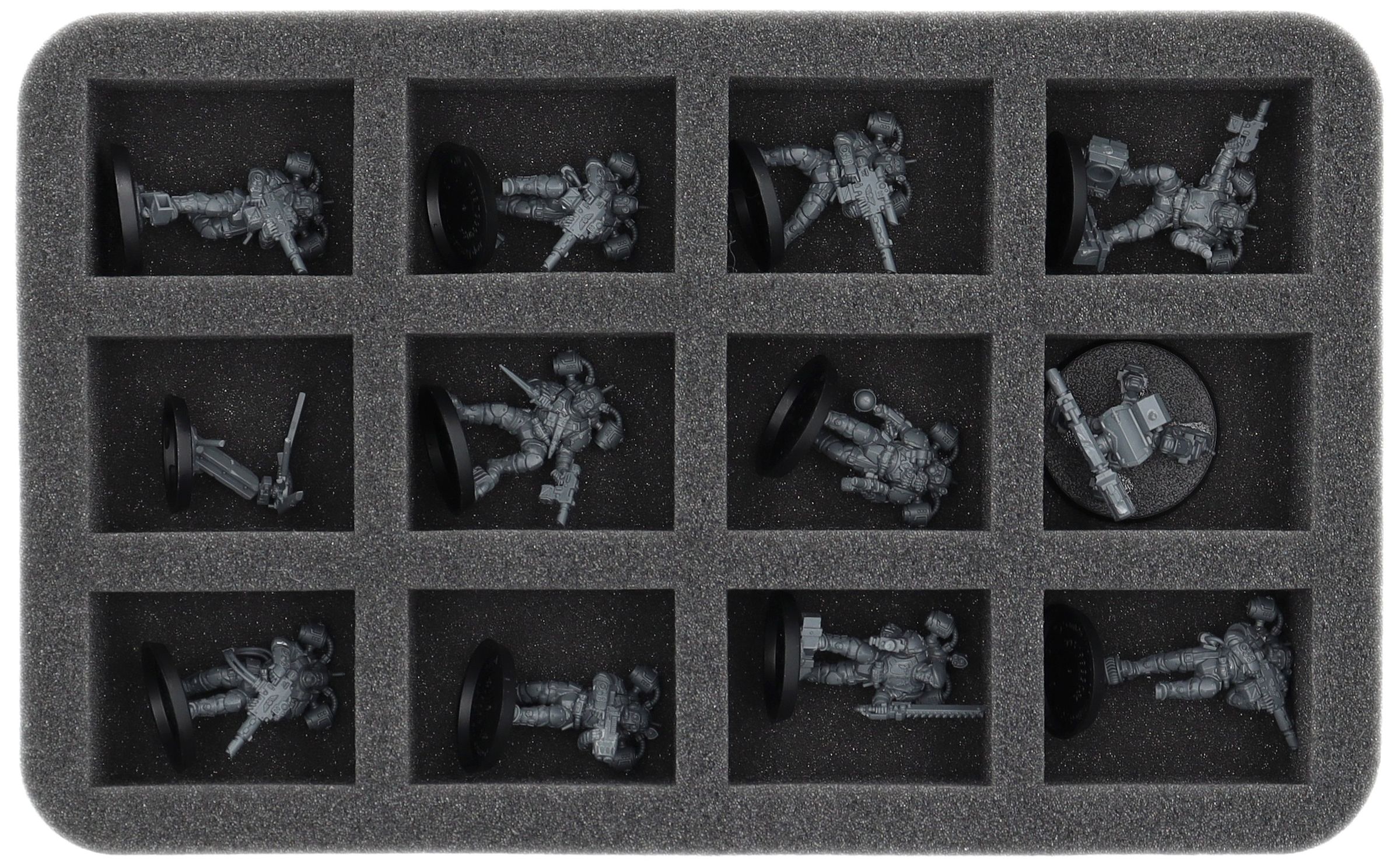 - 2 x HS045I012BO – Half-Size Schaumstoffeinlage mit jeweils 12 Fächern für z. B. Tempestus-Aquilons, Vespid-Stachelflügel und weitere Modelle