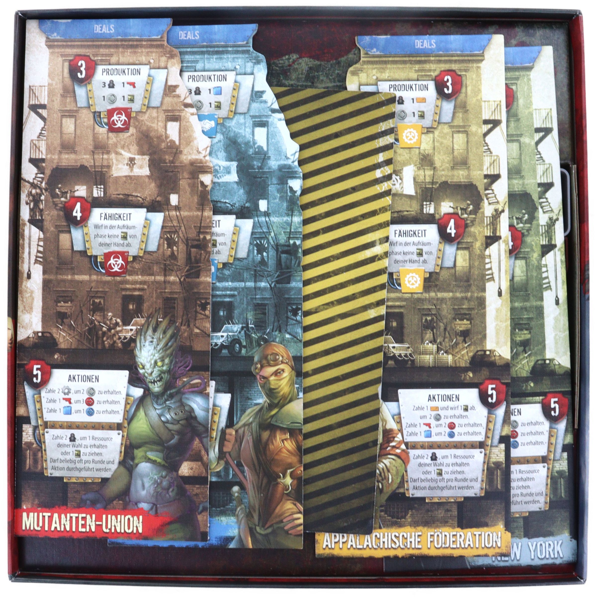 Willkommen in der dystopischen Zukunft von “51st State”. Keine Regierung, keine Armee, keine Zivilisation. Die Vereinigten Staaten sind zerstört. Nach 30 Jahren Krieg kämpfen neue Mächte um die Kontrolle und einen neuen Staat: den 51. Staat. Errichte, kämpfe und überlebe in diesem post-apokalyptischen Kartenspiel.