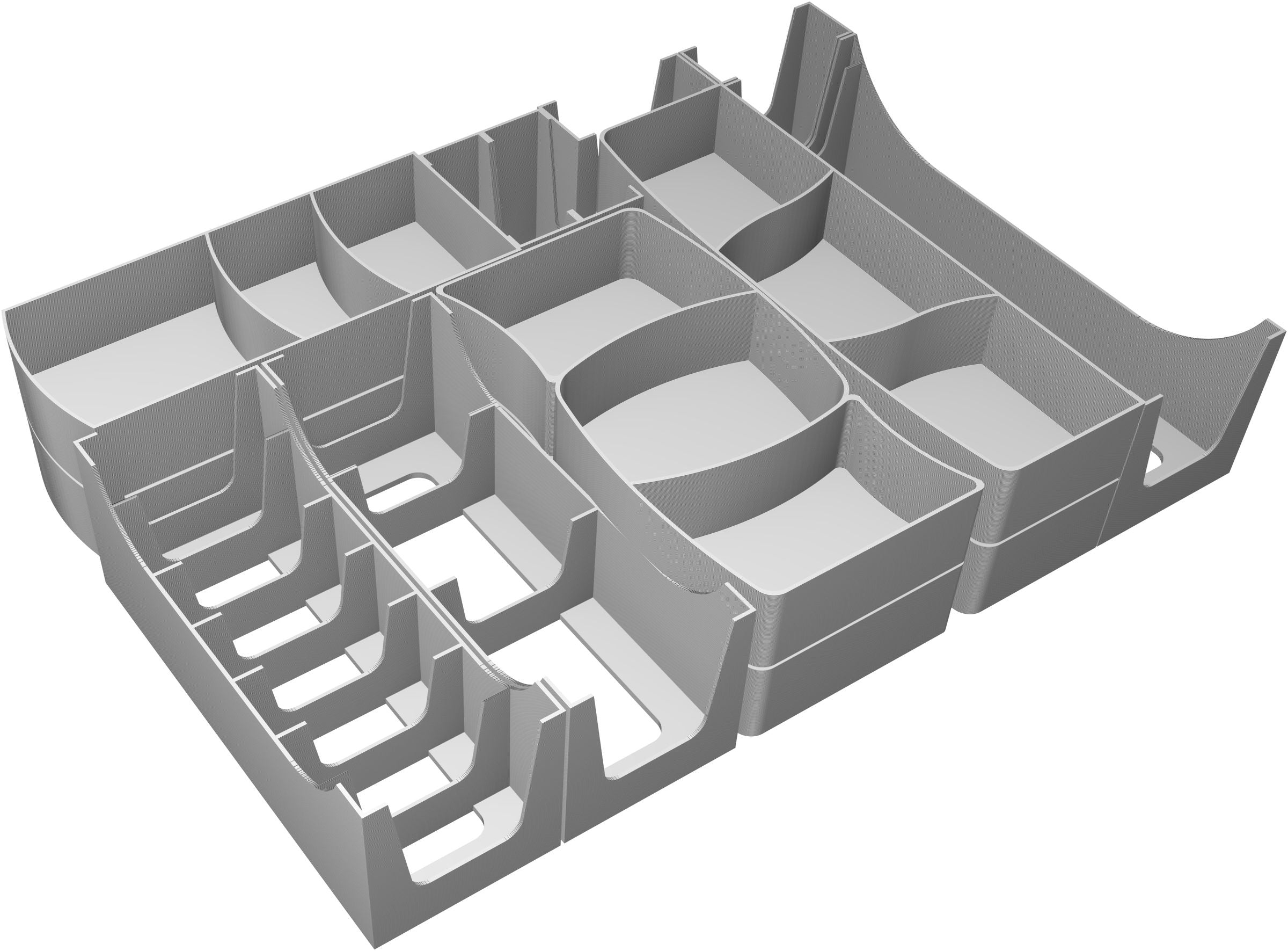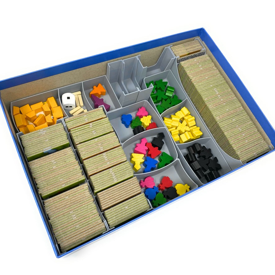 Der Organizer schafft Platz und Ordnung in deiner Brettspielbox und auf dem Tisch. Zwei Plättchenhalter und zwei Kästchen für die Meeple helfen dir beim Sortieren des gesamten Spielmaterials aus dem Grundspiel.