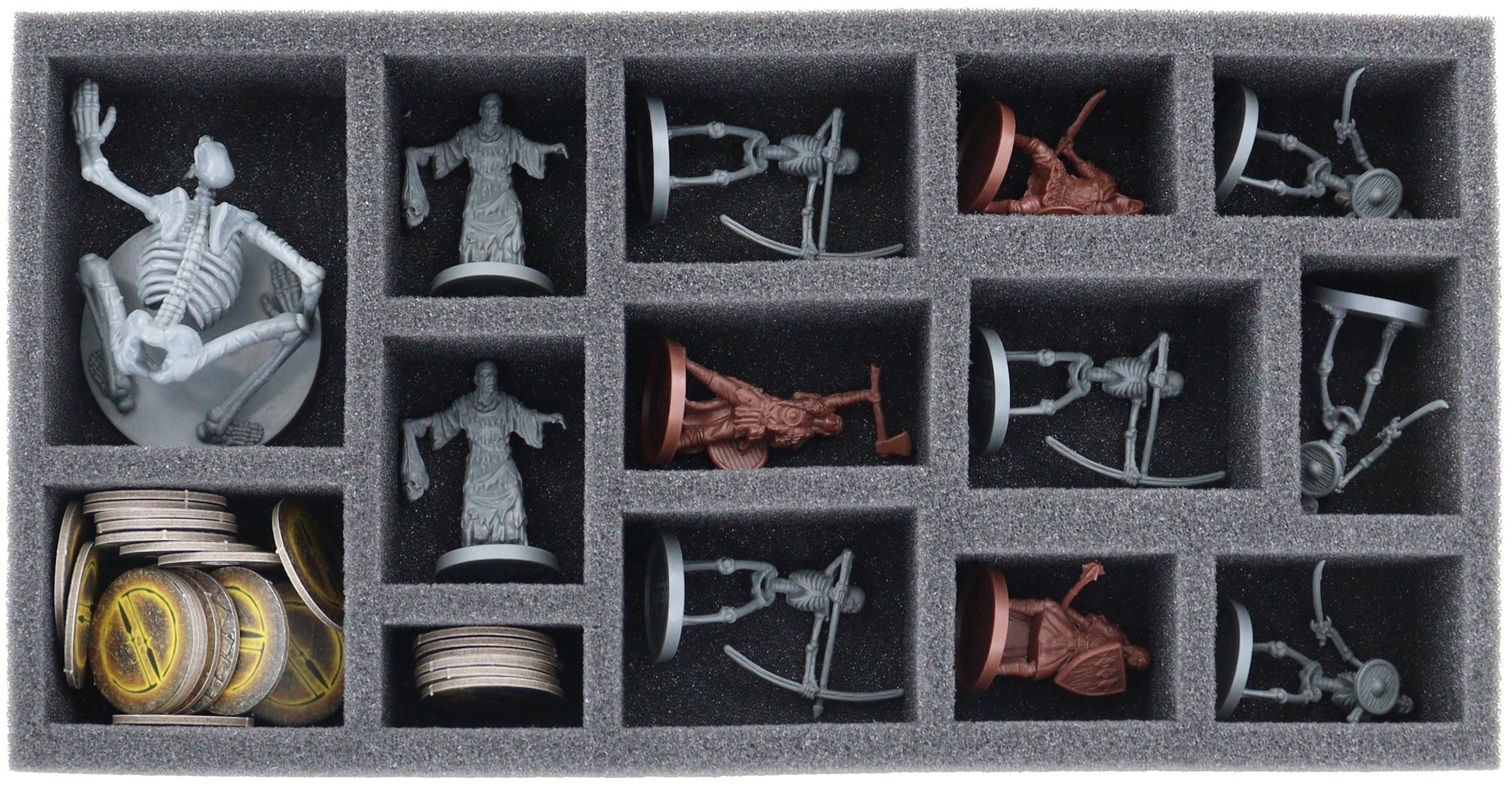 - 1 Schaumstoffeinlage mit dreizehn Fächern für Necromancer, Skeleton Archer, Skeleton Beast, Skeleton Soldier. Cleric, Pyromancer, Thief + Trap Token, Barrel Token