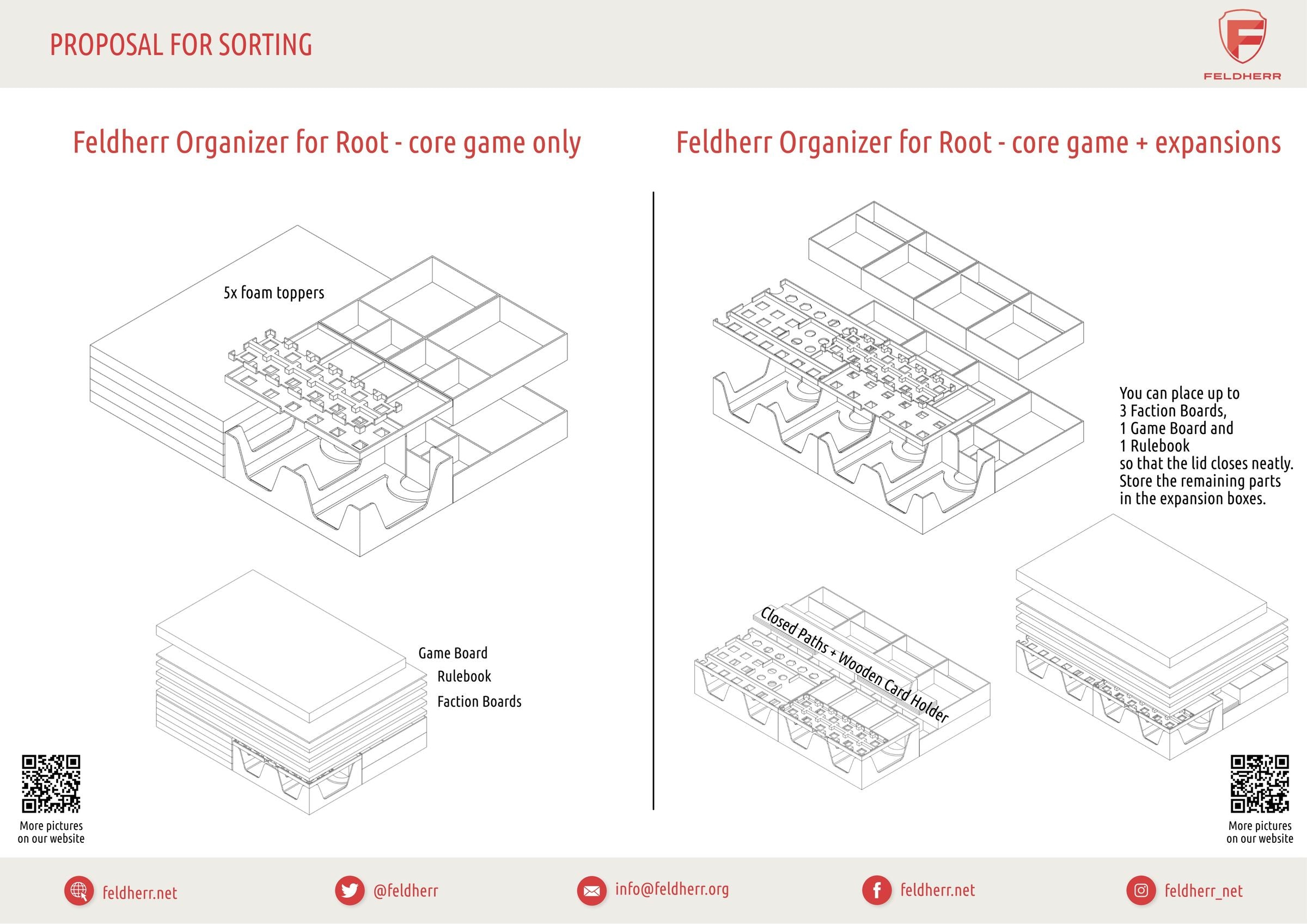 - Feldherr Organizer (ORG137) + Upgrade-Set (ORG138) bieten Platz für das gesamte Spielmaterial „Root“-Grundspiels und für das Spielmaterial der Erweiterungen.