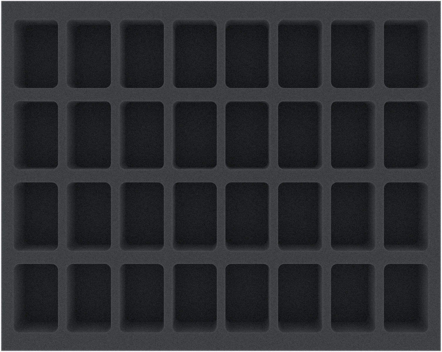 Diese Full-Size-Schaumstoffeinlage eignet sich mit ihren 32 Fächern hervorragend, um deine Miniaturen übersichtlich und bestens geschützt aufzubewahren.