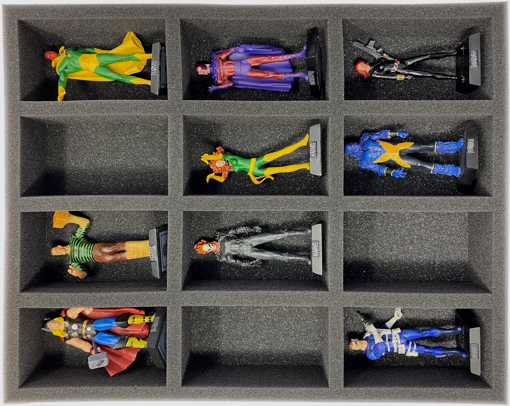 Diese Schaumstoffeinlage verfügt über 12 Fächer, in denen sich Eaglemoss Figuren sicher aufbewahren lassen.