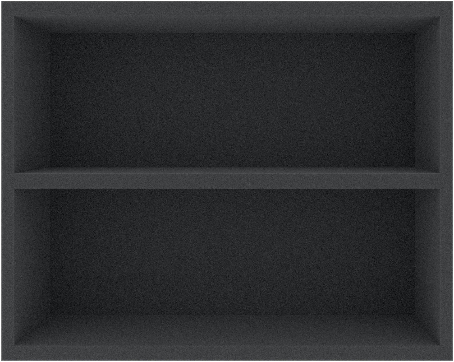 Die Full-Size-Schaumstoffeinlage hat die Abmessungen: 345 mm x 275 mm x 100 mm Gesamthöhe (90 mm Nutzungshöhe + 10 mm Boden).