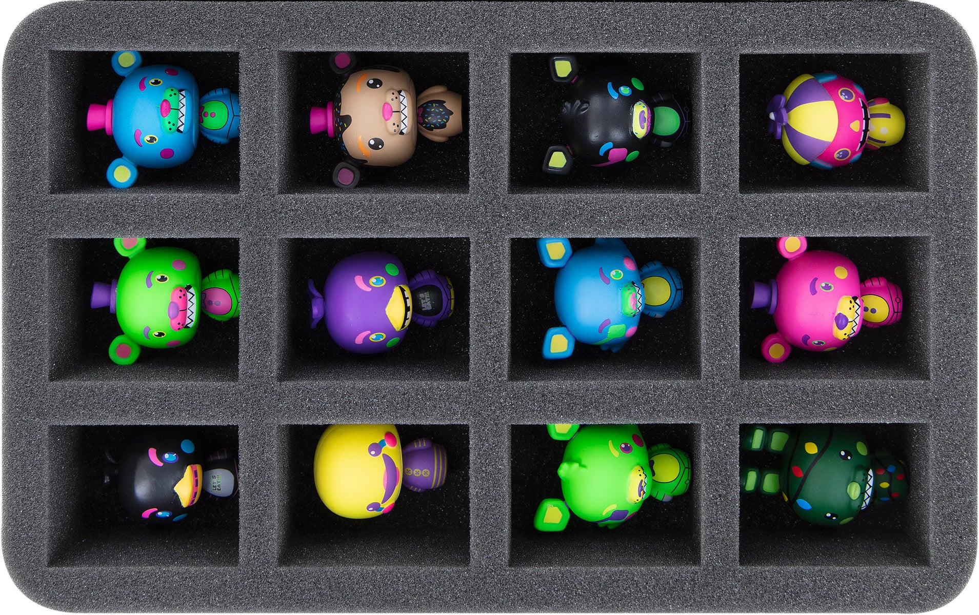 Auf dieser Half-Size-Schaumstoffeinlage hast du Platz für bis zu 12 Miniaturen. Das Insert eignet sich hervorragend zum Aufbewahren von FunkoPocket Pops in Standardgröße.