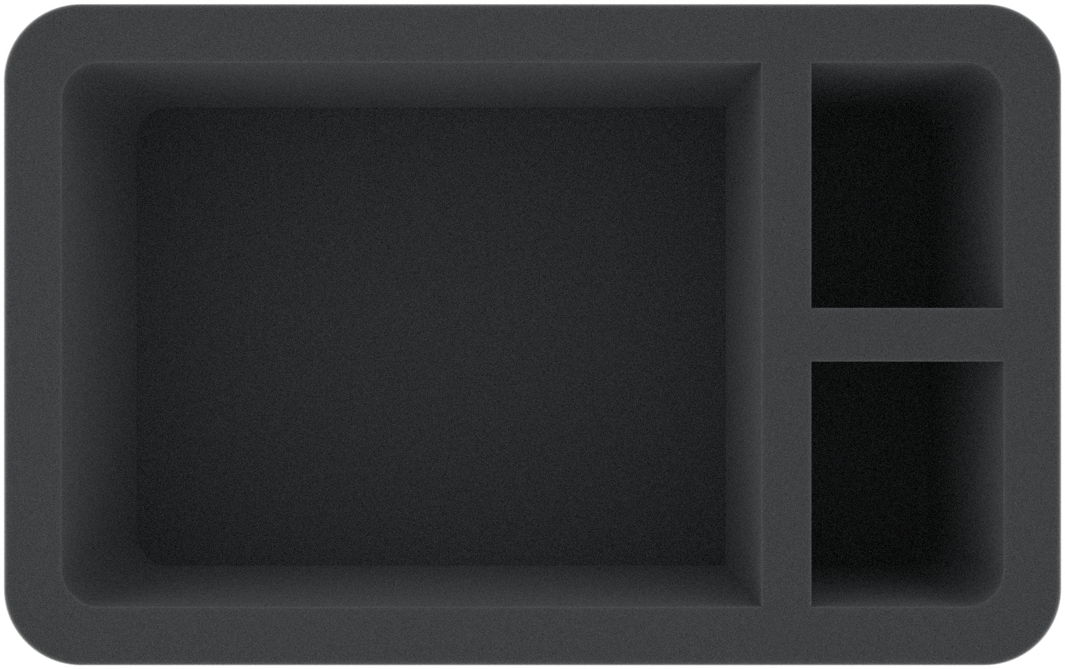 Die Half-Size-Schaumstoffeinlage hat die Abmessungen: 275 mm x 172 mm x 100 mm Gesamthöhe (110 mm Nutzungshöhe + 10 mm Schaumstoffboden)
