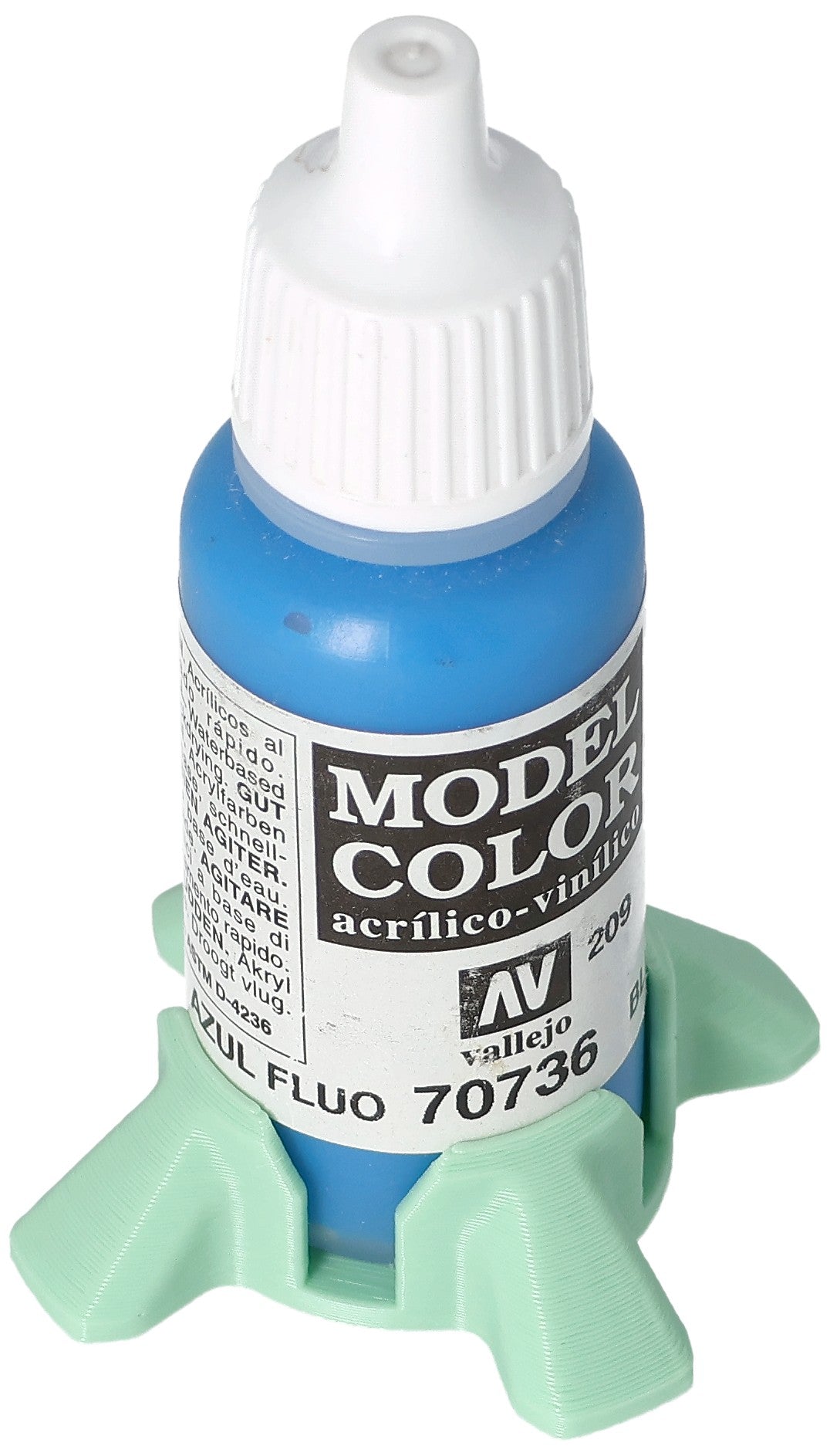 The stand is suitable for plastic dropper bottles from common manufacturers such as Vallejo, Army Painter, and many more (Ø 25 mm, approx. 18 ml capacity).