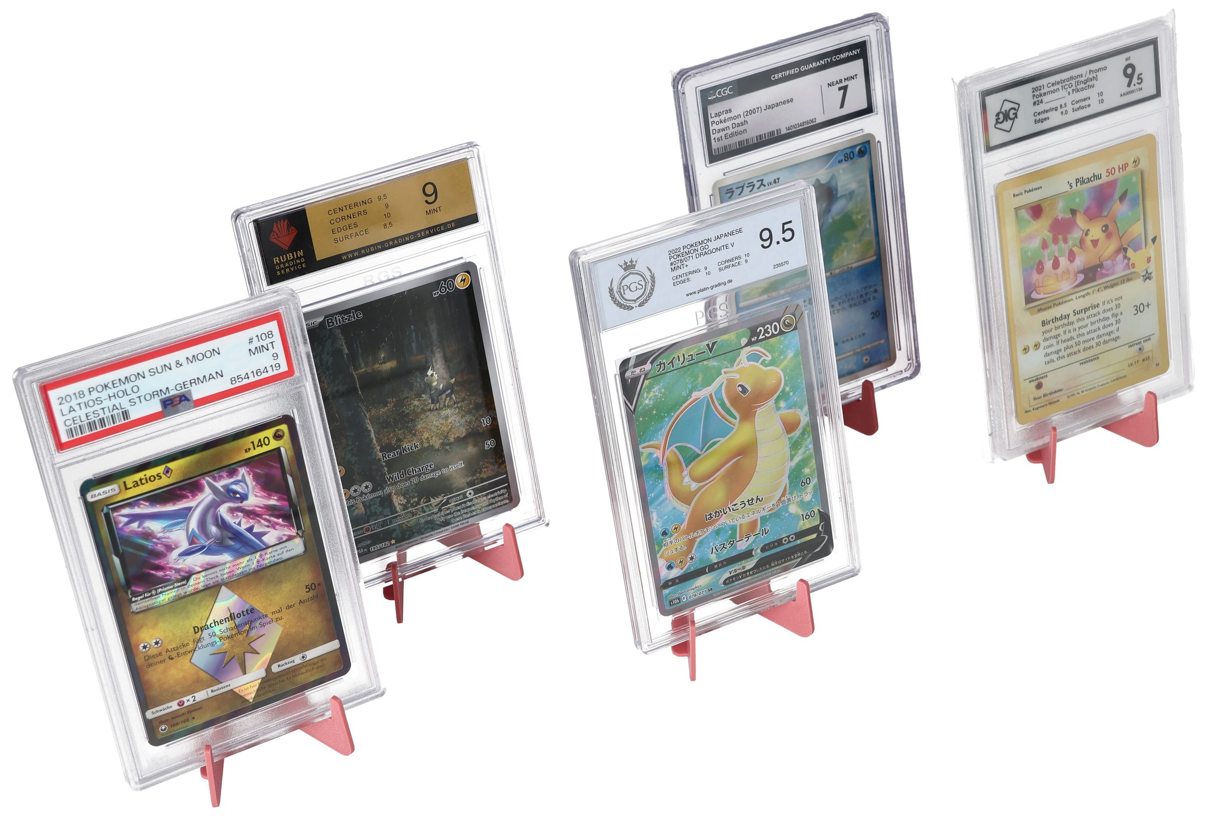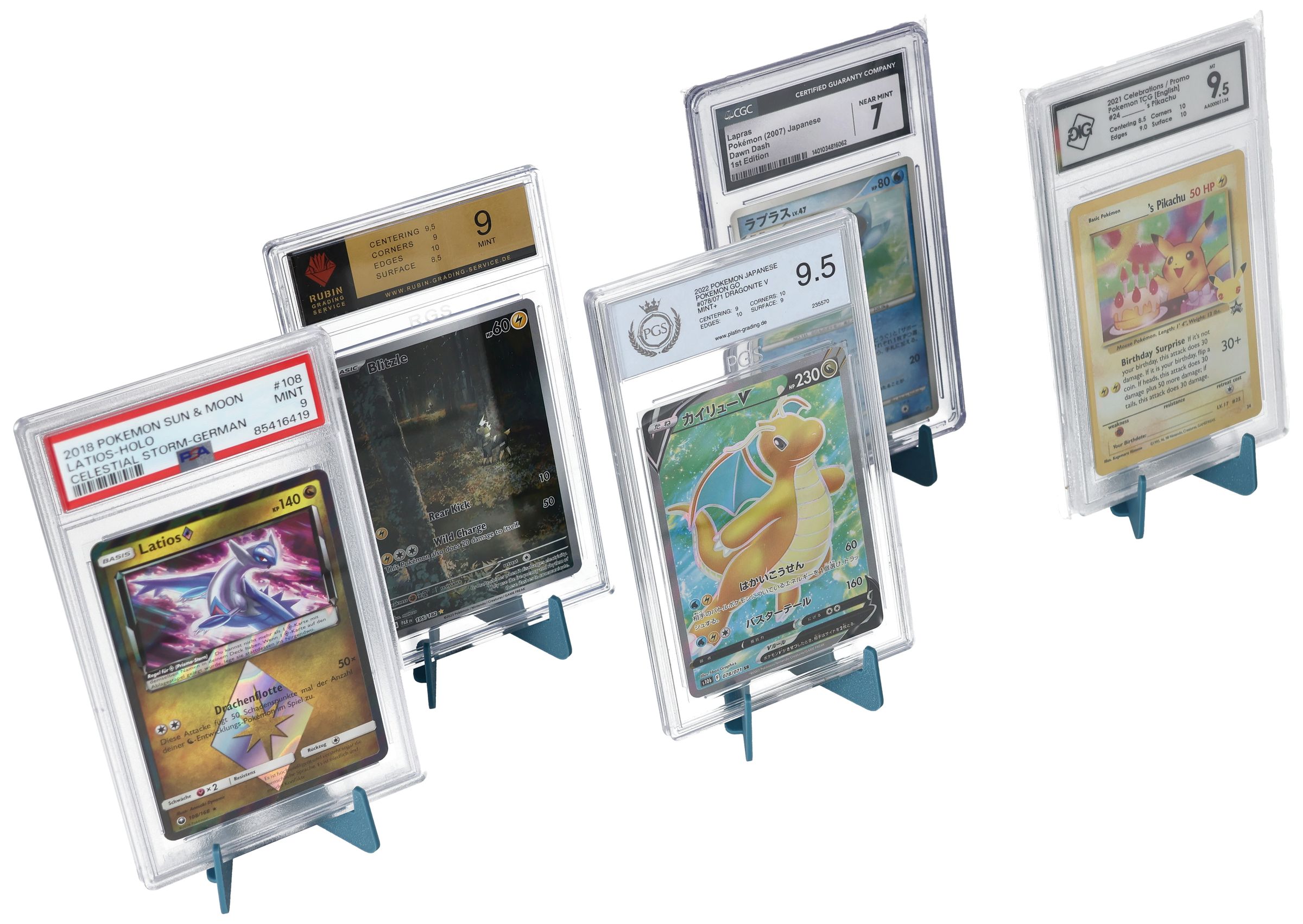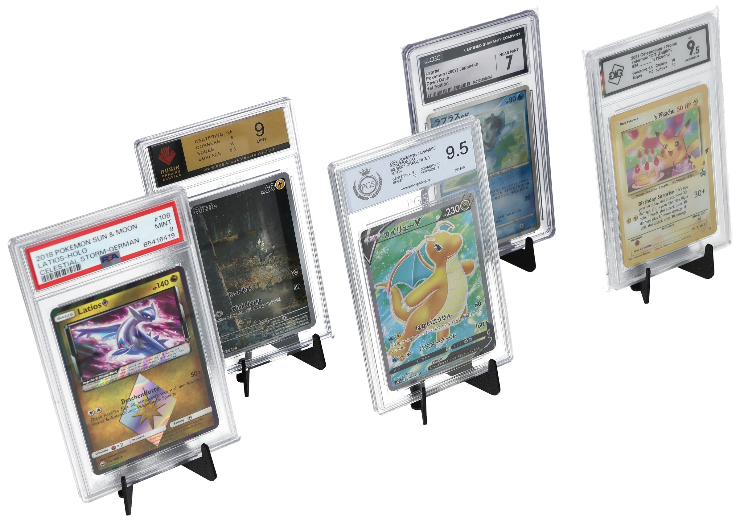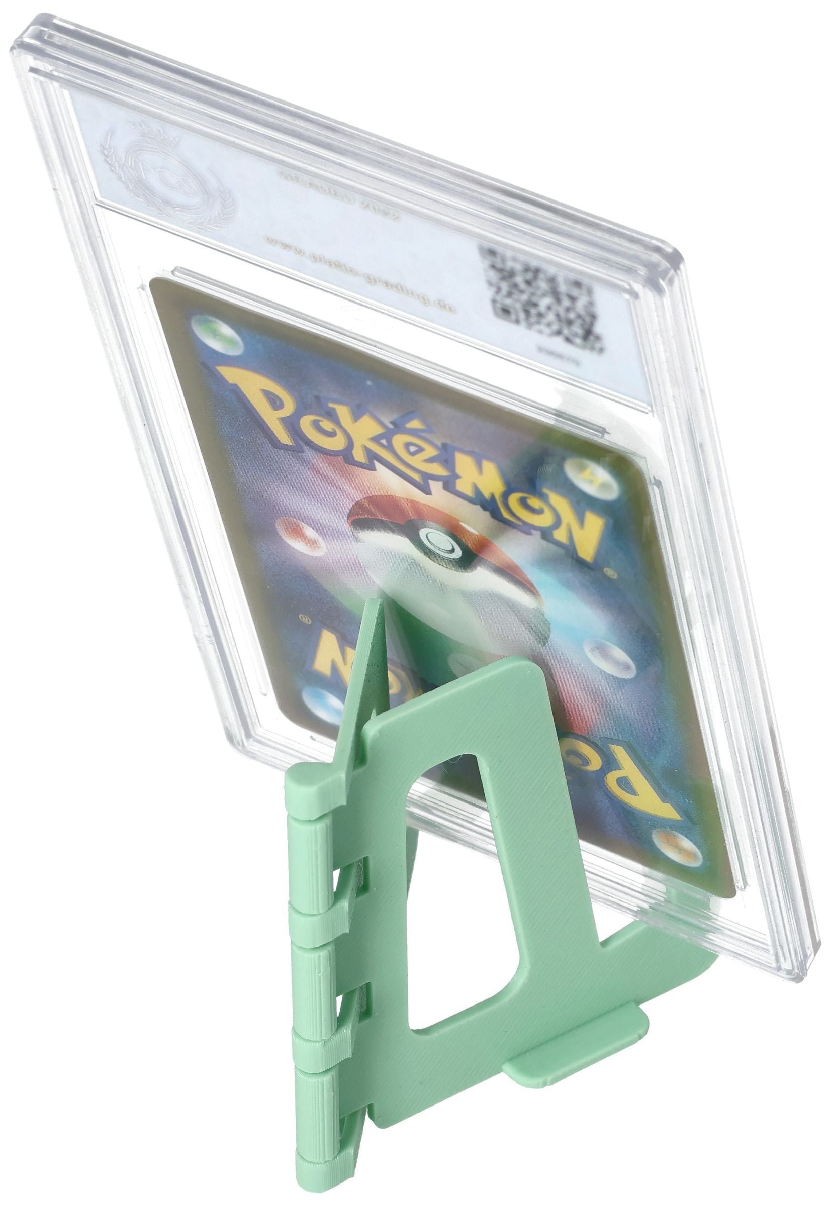 - Stand for graded cards, trading cards, and collectible cards in slabs and toploader - secure hold for cases up to 8 mm thick