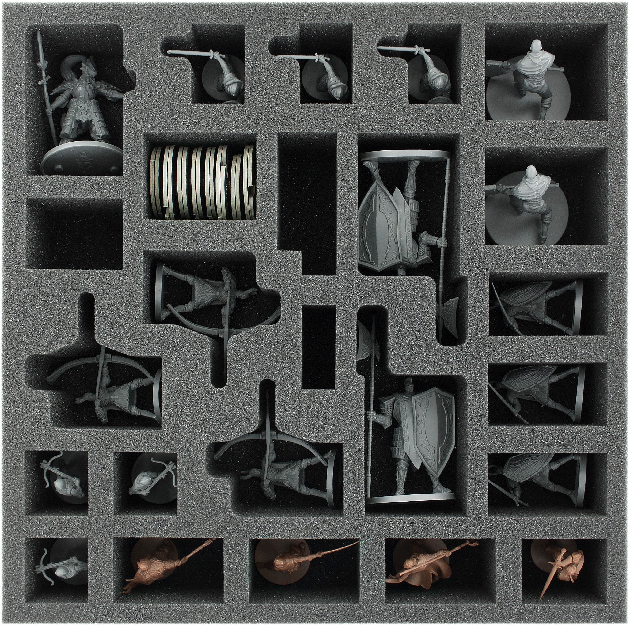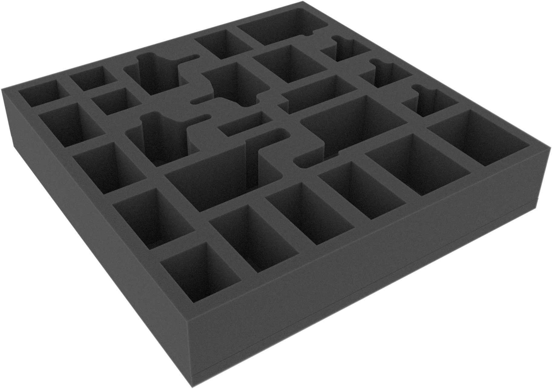 Foam tray with 25 compartments especially for Dark Souls - The Board Game - characters. The 25 different compartments are perfect for the miniatures and characters. The foam tray fits into the original board game box and also perfectly into the Feldherr box LBBG. The 55 mm foam tray for offers: