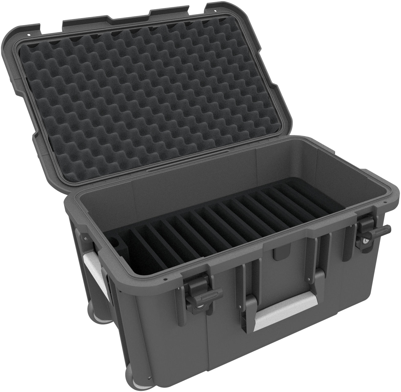 Transport Case / Trolley for 12 tablets in XL sleeves - compartments 26 mm wide - compatible with Apple iPad, Samsung Galaxy Tab A or Microsoft Surface Go