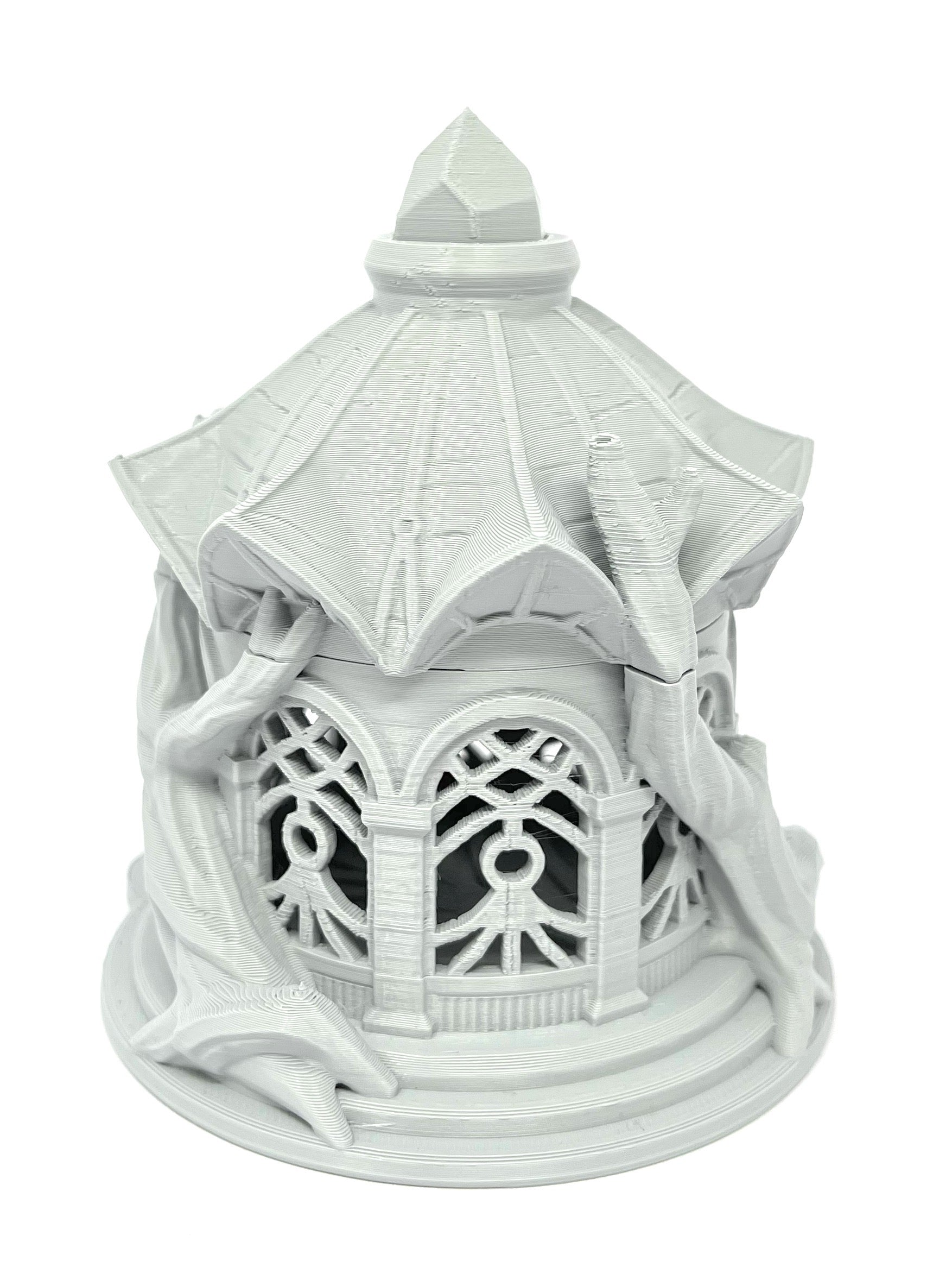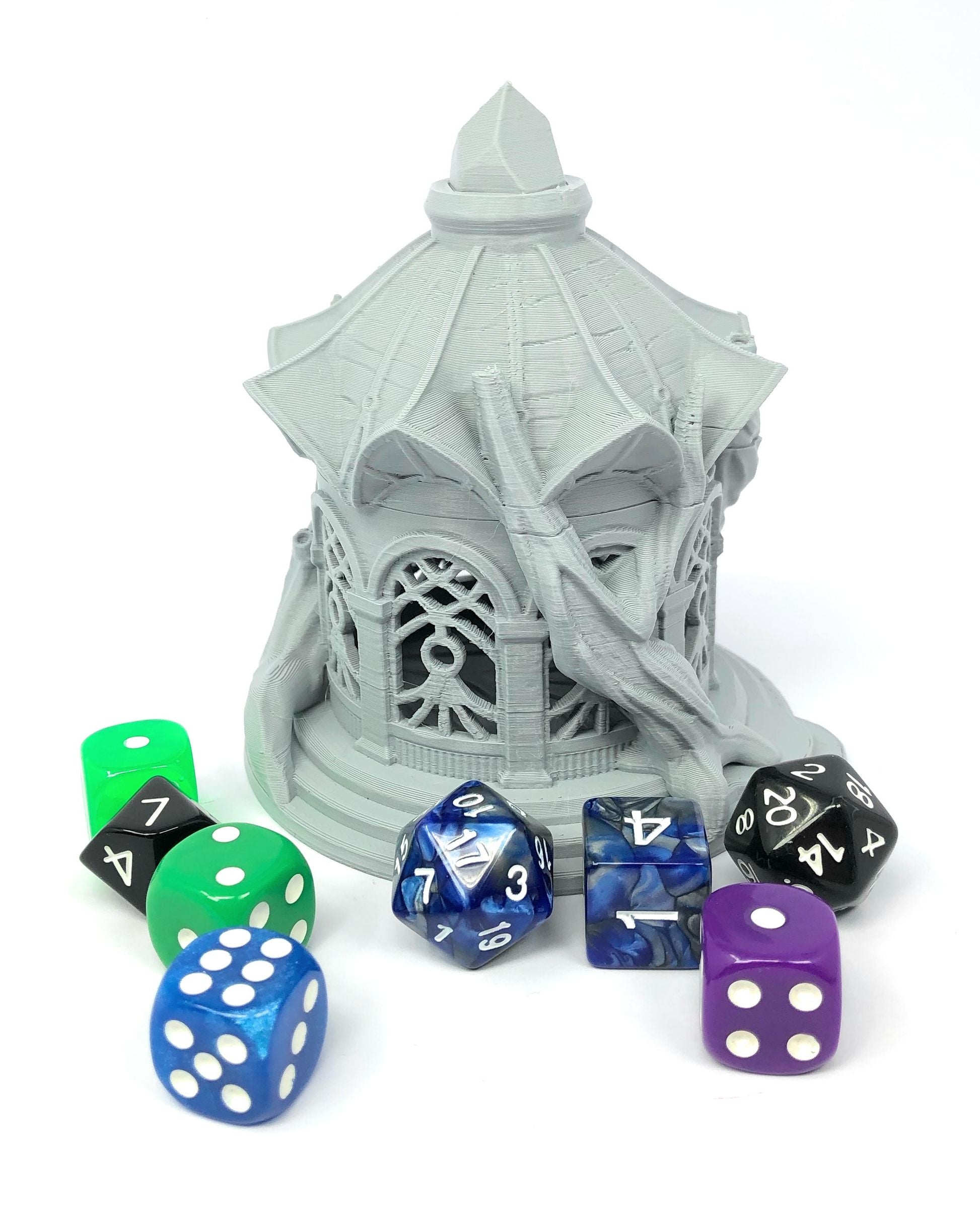 3D printed - detailed dice jail. The Dice Jail can also be used as a terrain part for your miniatures game or as a center piece for your next DnD session.
