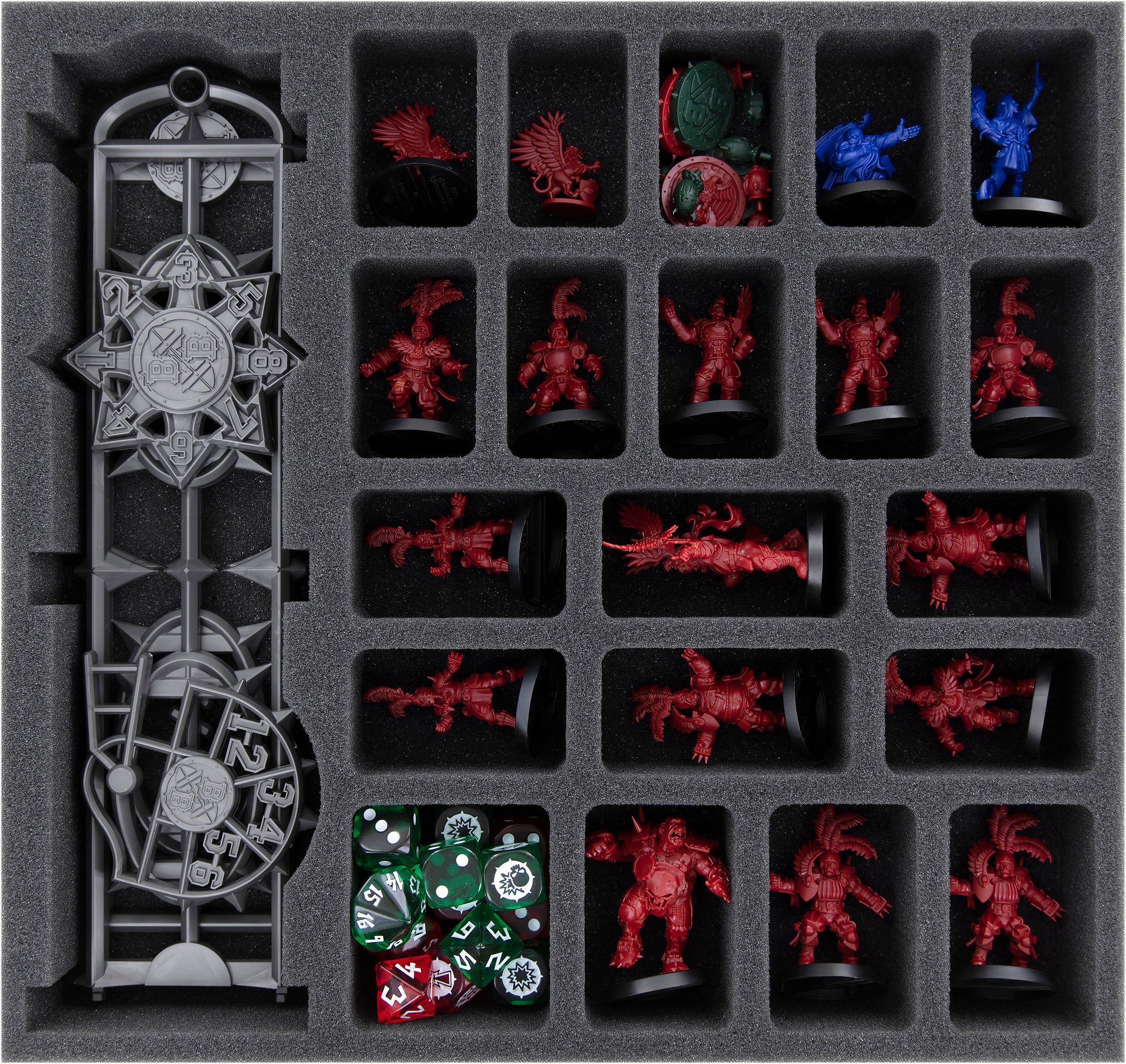 To keep the Goblins and counters from sinking helplessly into the foam, you can fill the round compartments for the small miniatures, with pieces from the Pick and Pluck foam tray, which is also included.