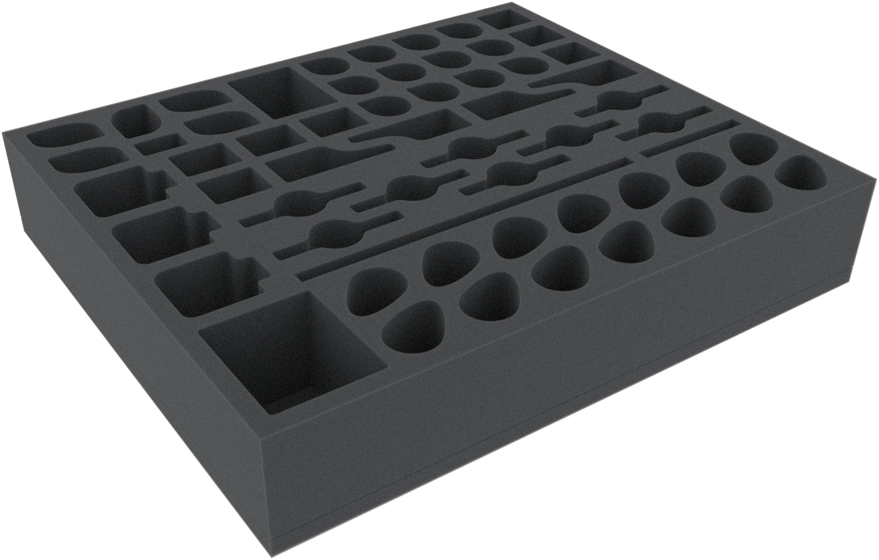 Whether Marine or Alien - the foam insert has an customized compartment reserved for each miniature. From Dreadnought to Genestealers to Gretchin, they all get a miniature-precisely tailored compartment. The custom-fit cut helps with sorting and also ensures that nothing slips around during transport. Sensitive parts, such as bolter, claws or power sword, are thus optimally protected from damage. If you have painted your models, you can be sure that the colors are still free from scratches and abrasion after transport.