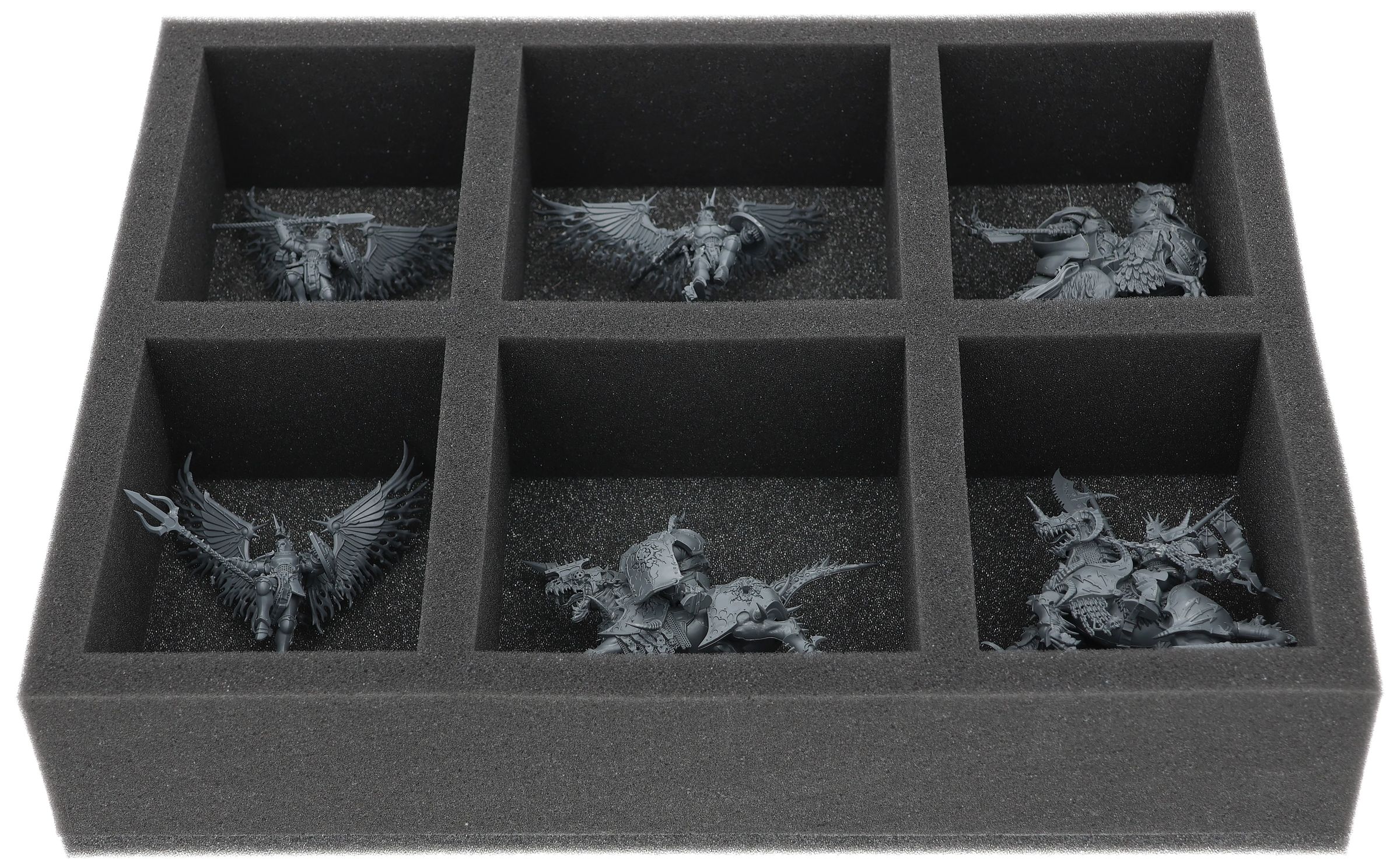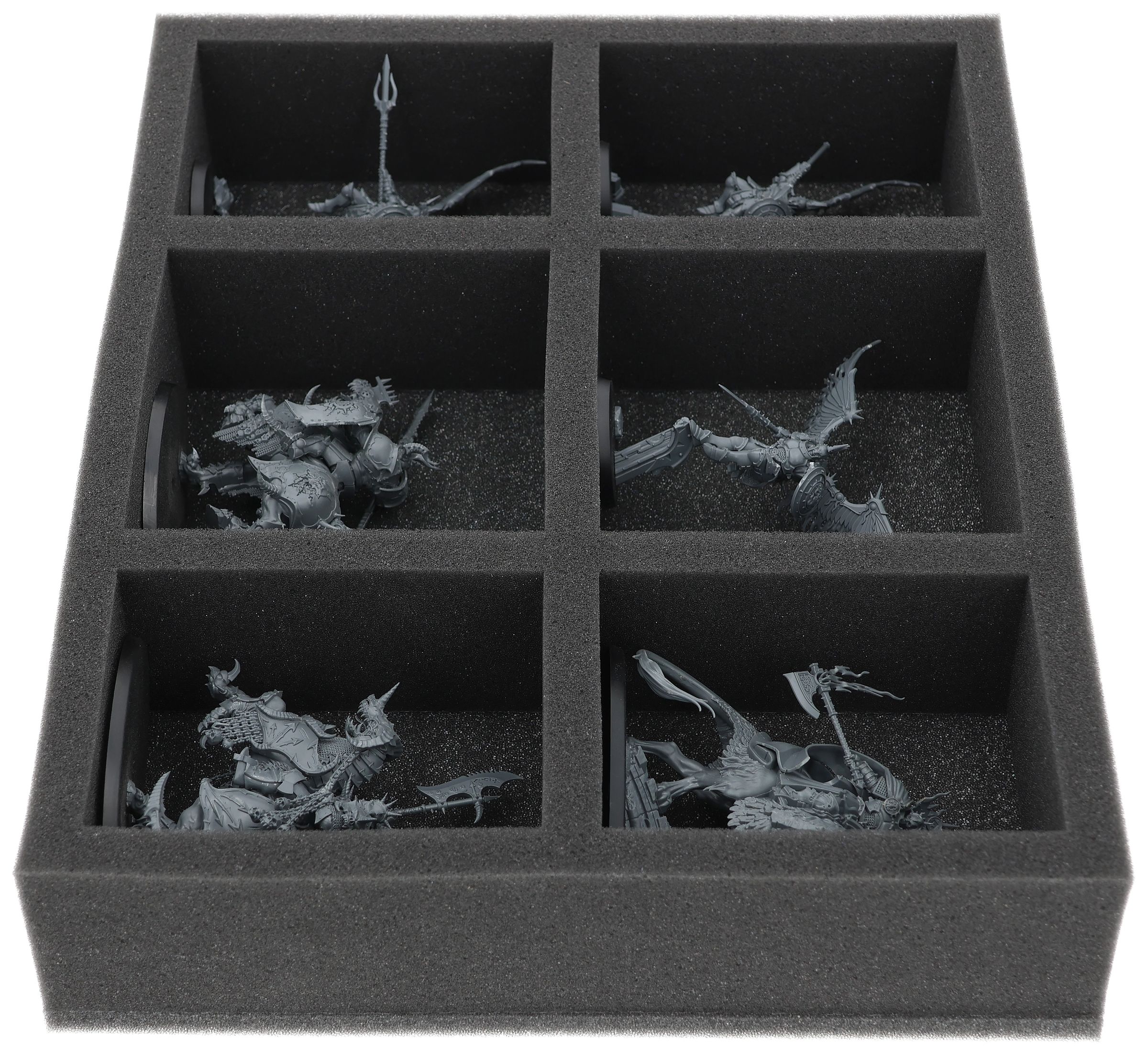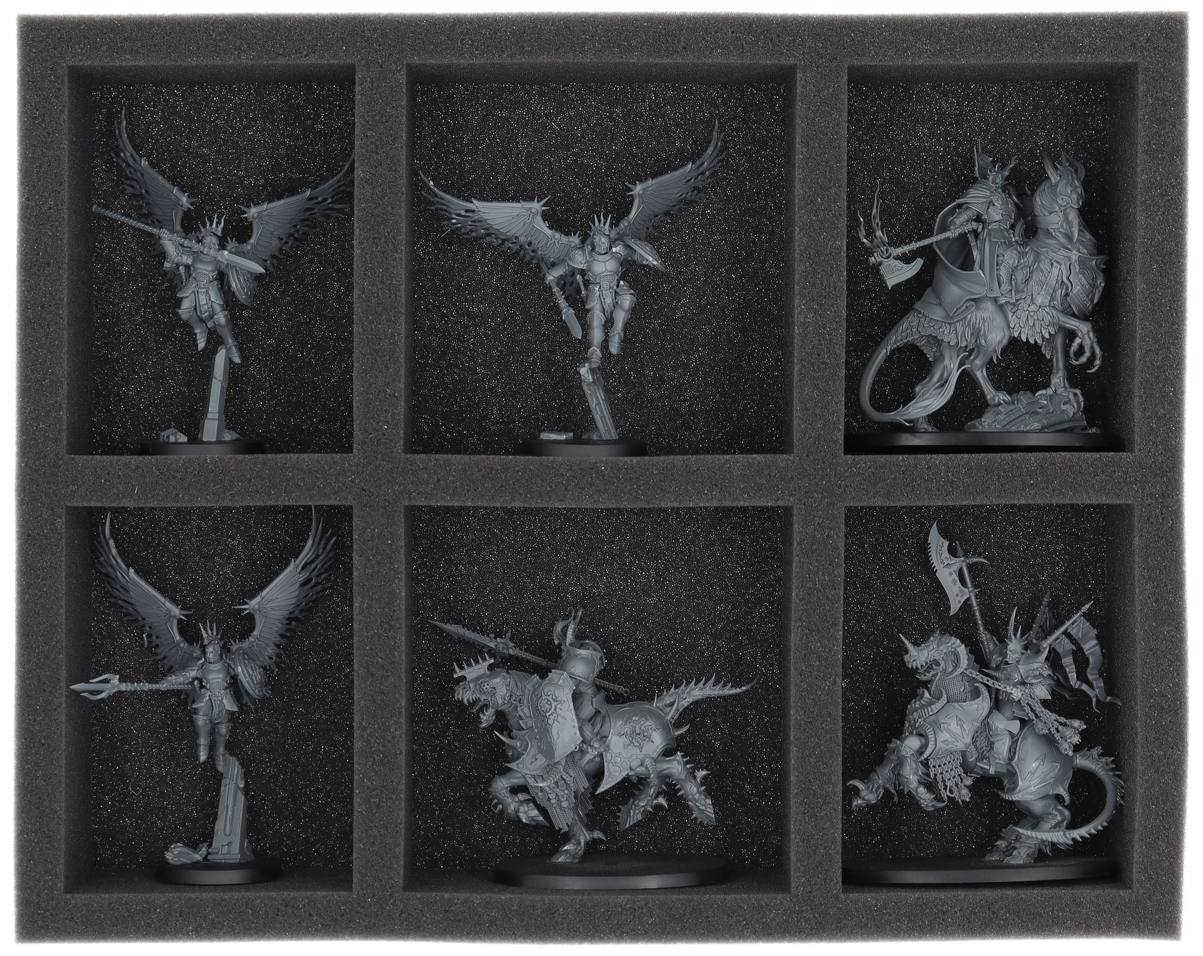 In the 6 large compartments of this Full-Size foam tray you can neatly stow the larger miniatures of your Stormcast Eternals army and transport them to the tabletop in the best protected way.