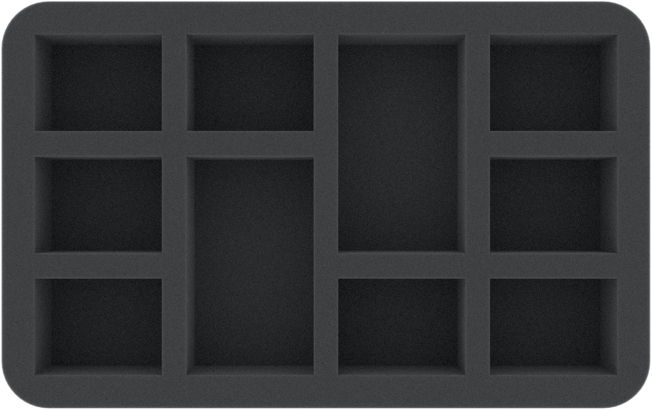 On this Feldherr foam tray you have space for up to 10 miniatures of your army. The insert is especially suitable for storing the Arkanaut Company oder Grundstok Thunderer and similar sized models.