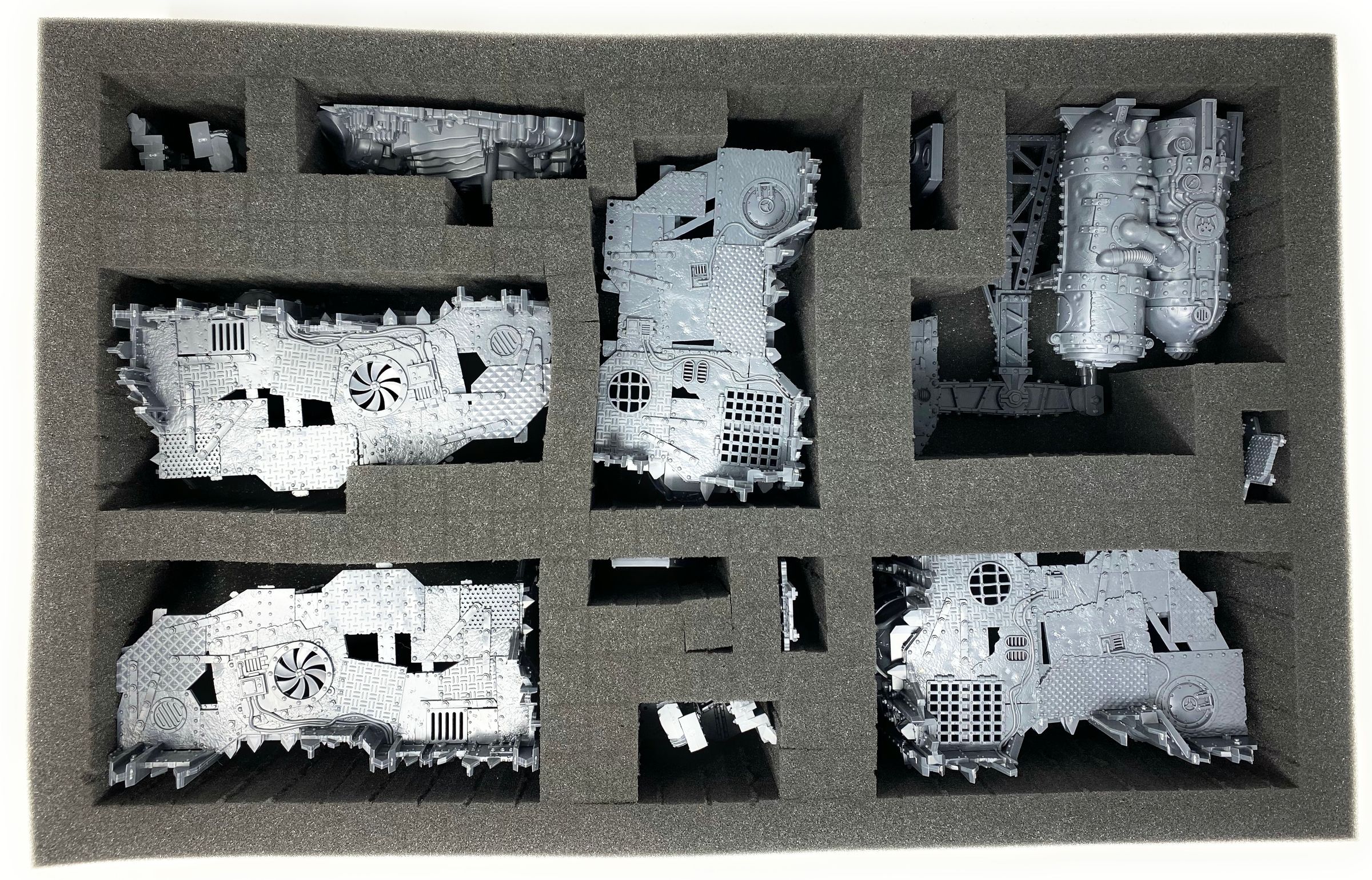 To ensure that your miniatures do not desert before the mission or your buildings fall out of the inserts, matching foam toppers are included in the set. They prevent anything from falling out of the trays and reliably protect your miniatures from any harm.