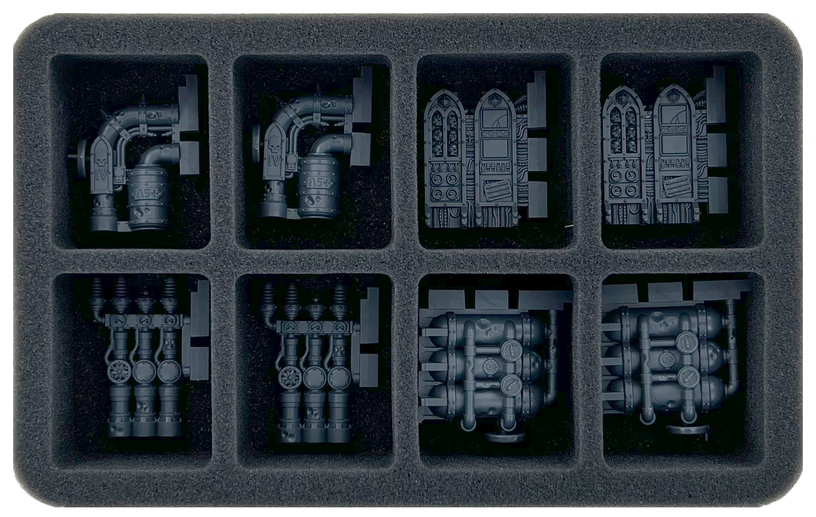 Thanks to the custom-fit cut, the miniatures have a tight fit. The figures remain in place even if the Gellar fields fail during transport. The soft, fine-pored foam protects filigree details like weapons, servo arms, and limbs from breaking off and the colors of your painted models from scratches and color abrasion.
