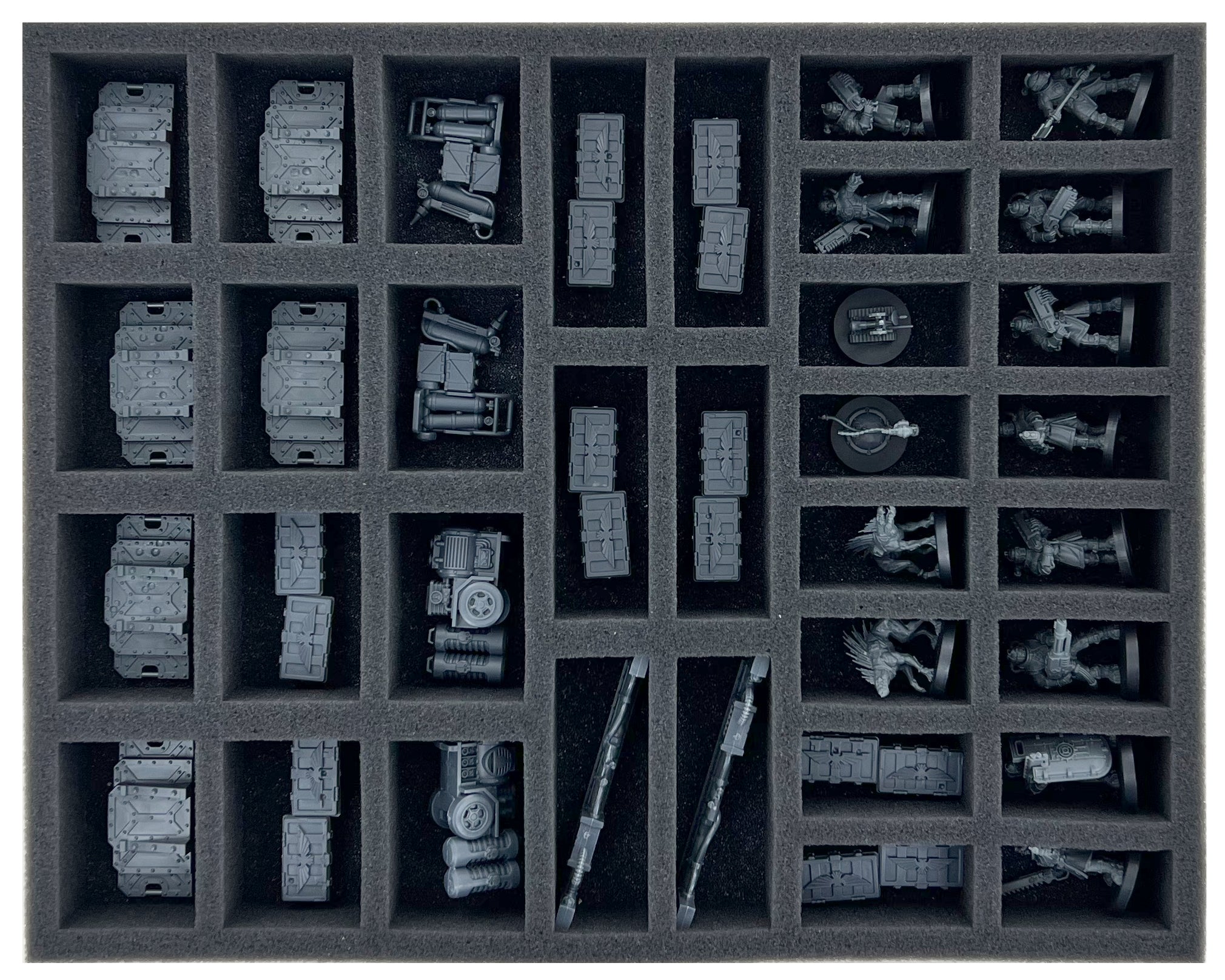 To protect your units, this set offers you enough pre-cut foam compartments. Whether it's a dashing member of the Imperial Navy or a Kroot mercenary, each miniature gets its own custom-fit compartment.