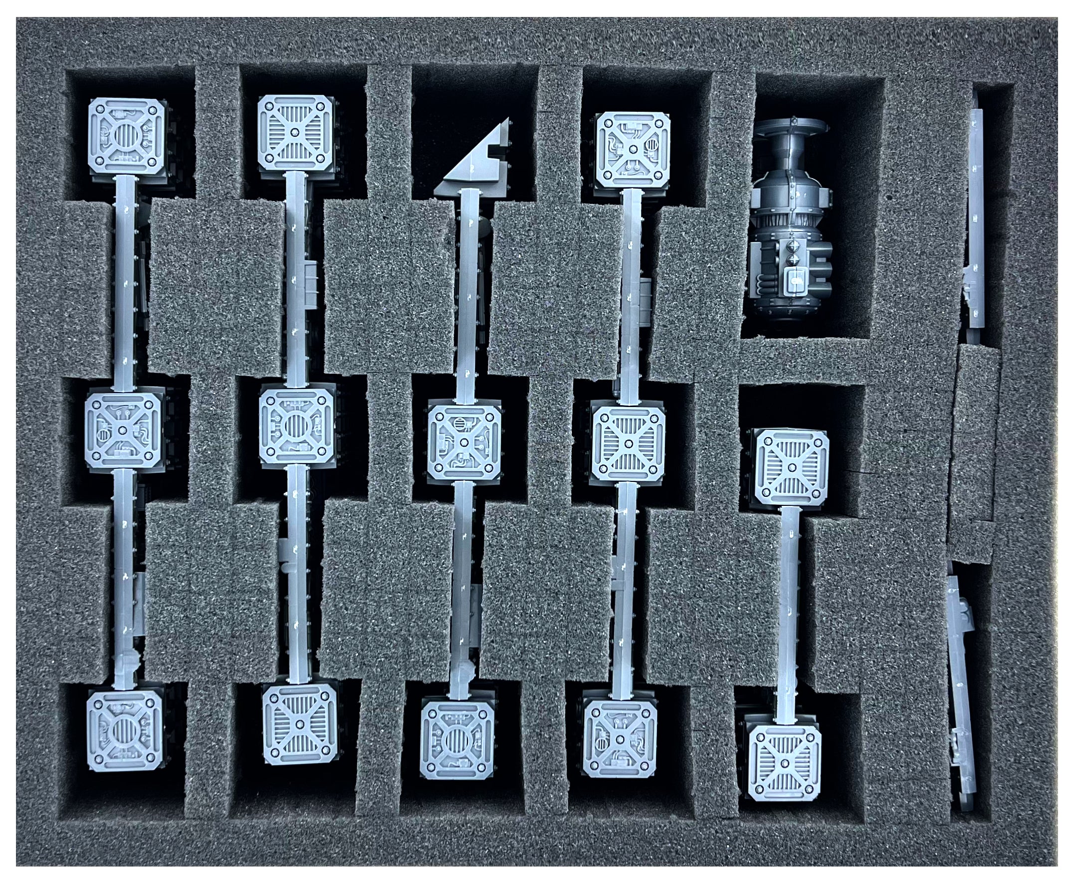 For the terrain pieces we added enough Pick an Pluck foam to the set. No matter how you want to lay out your Killzone, the Pick and Pluck foam is ideal for your configuration! With Pick and Pluck foam you can arrange foam compartments yourself! Simply cut the raster with a cutter, scissors or even your fingers into the desired shape.
