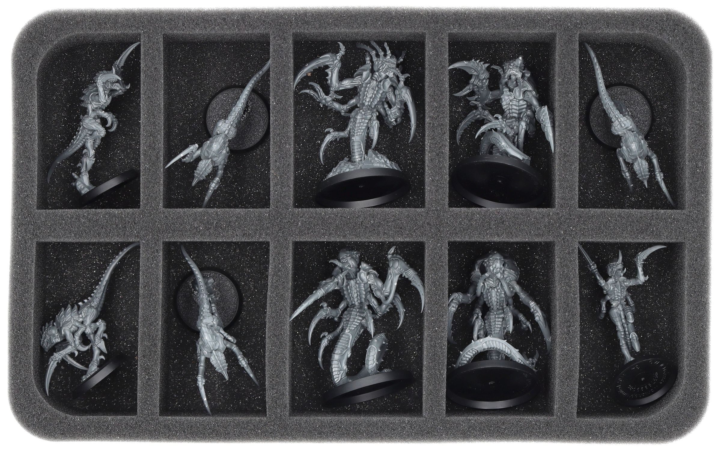 The included foam inserts are tailored to both Kill Teams and together provide space for up to 40 miniatures. The precise cut ensures that everything stays in place during transport. The fine-pored foam protects delicate parts and painted details from damage.
