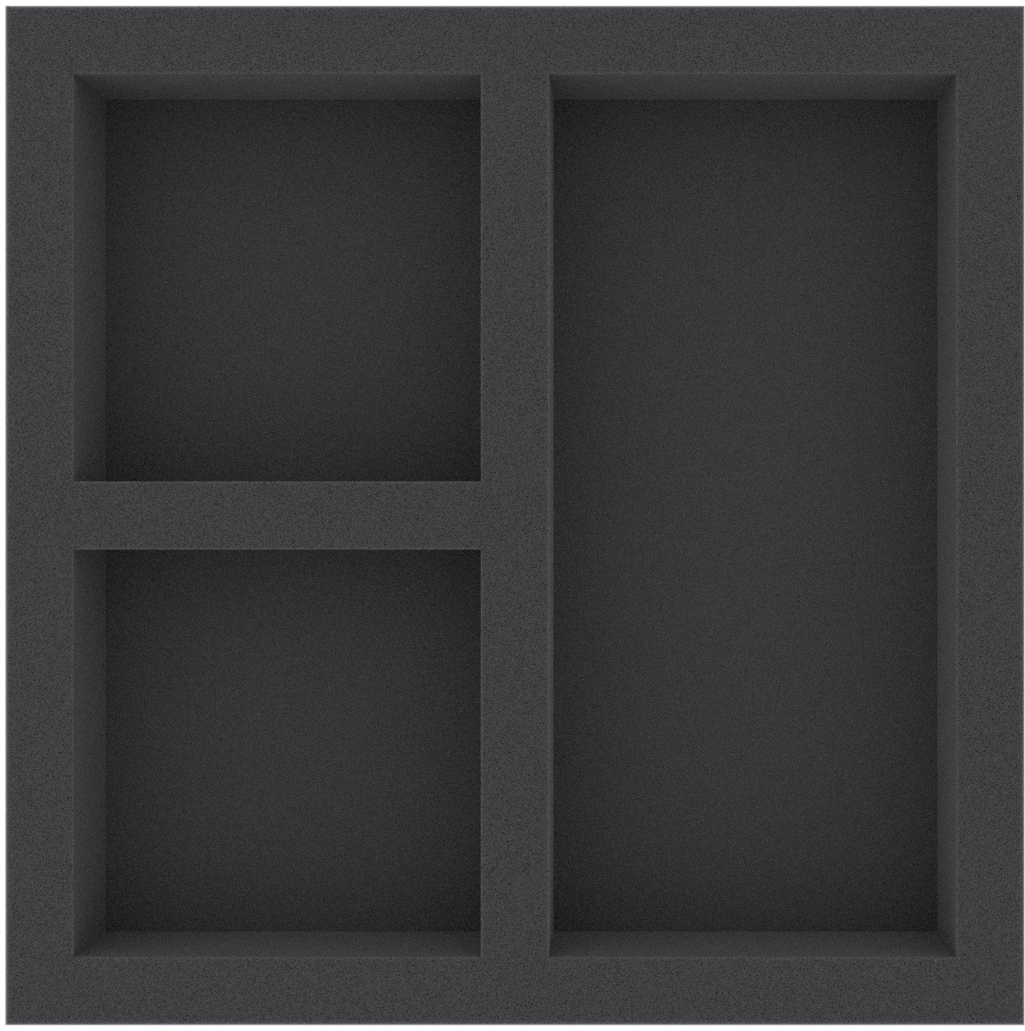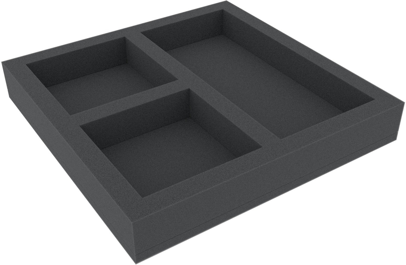 The foam tray has the dimensions: 300 mm x 300 mm x 45 mm total height (35 mm usable height + 10 mm foam base).