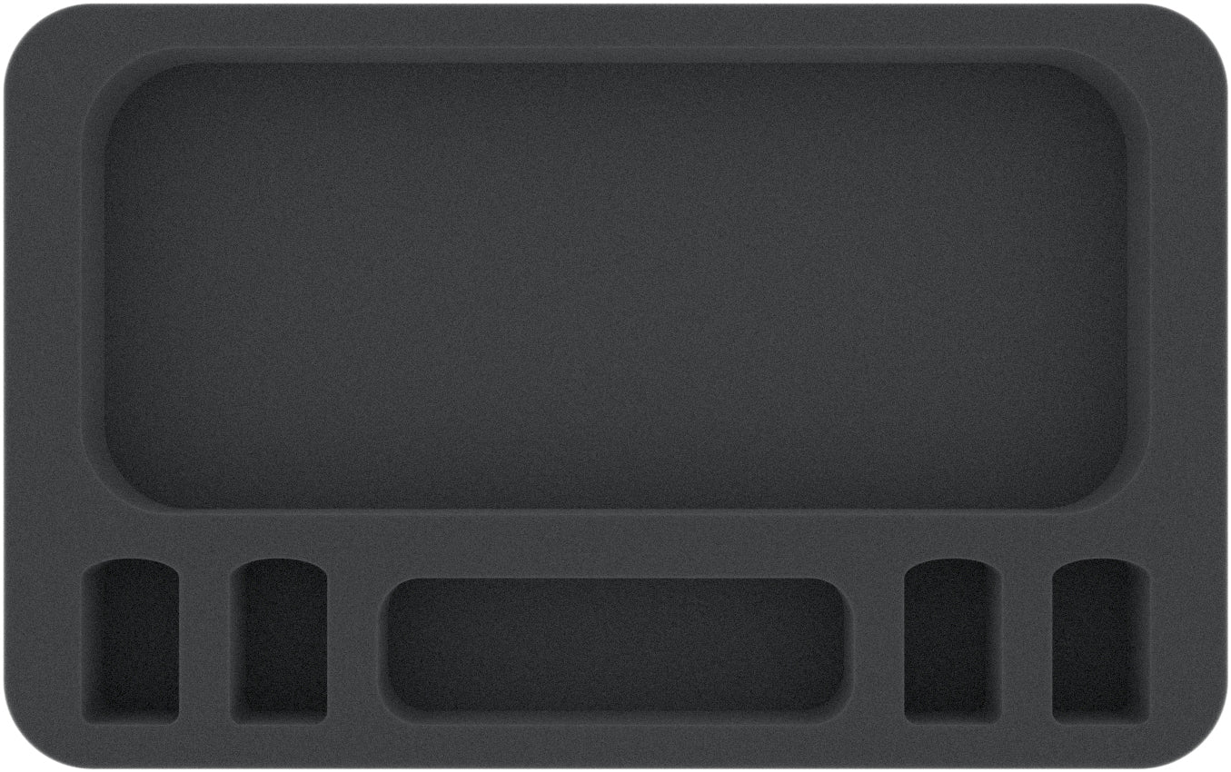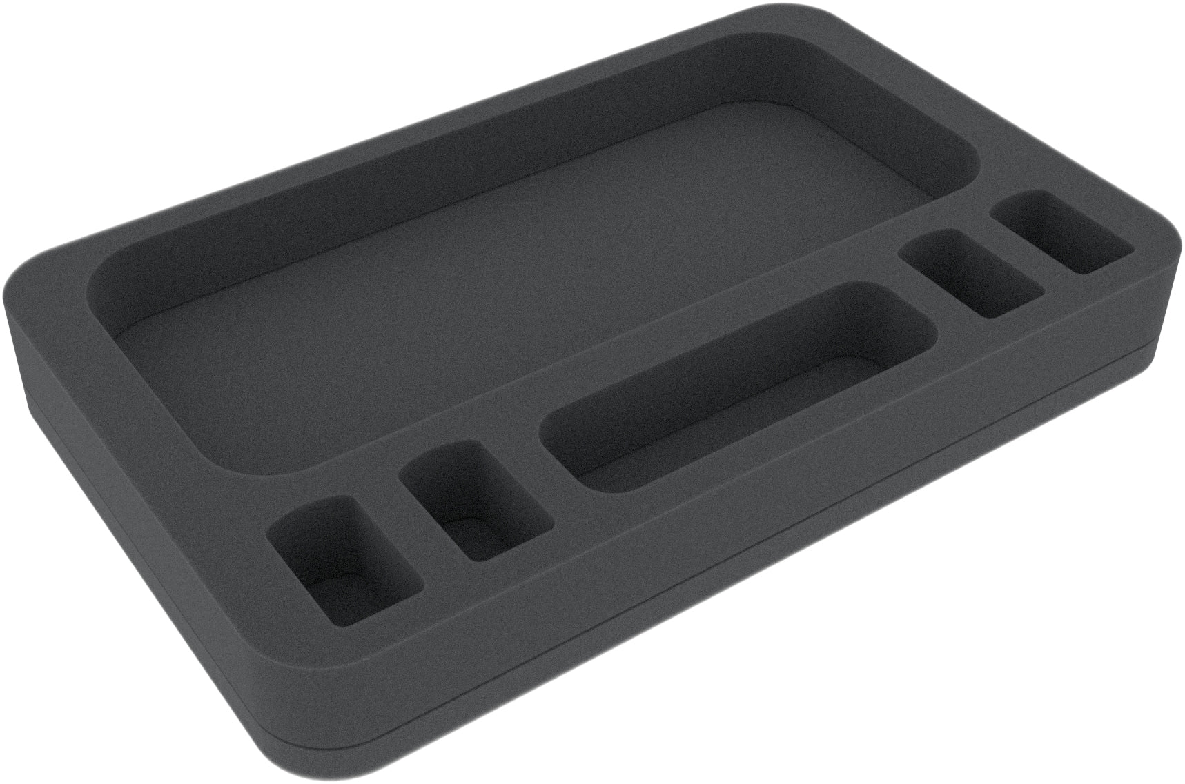 The foam tray has the dimensions: 275 mm x 172 mm x 35 mm total height (25 mm usable height + 10 mm foam base).