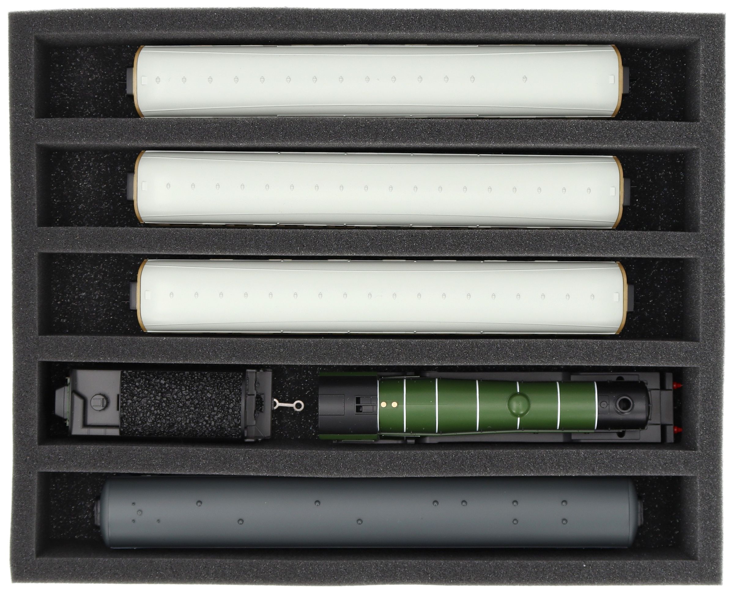 FS065A002 Foam inlay 00 Gauge - vertical - 5 slots for model railway locomotives, wagons and vehicles