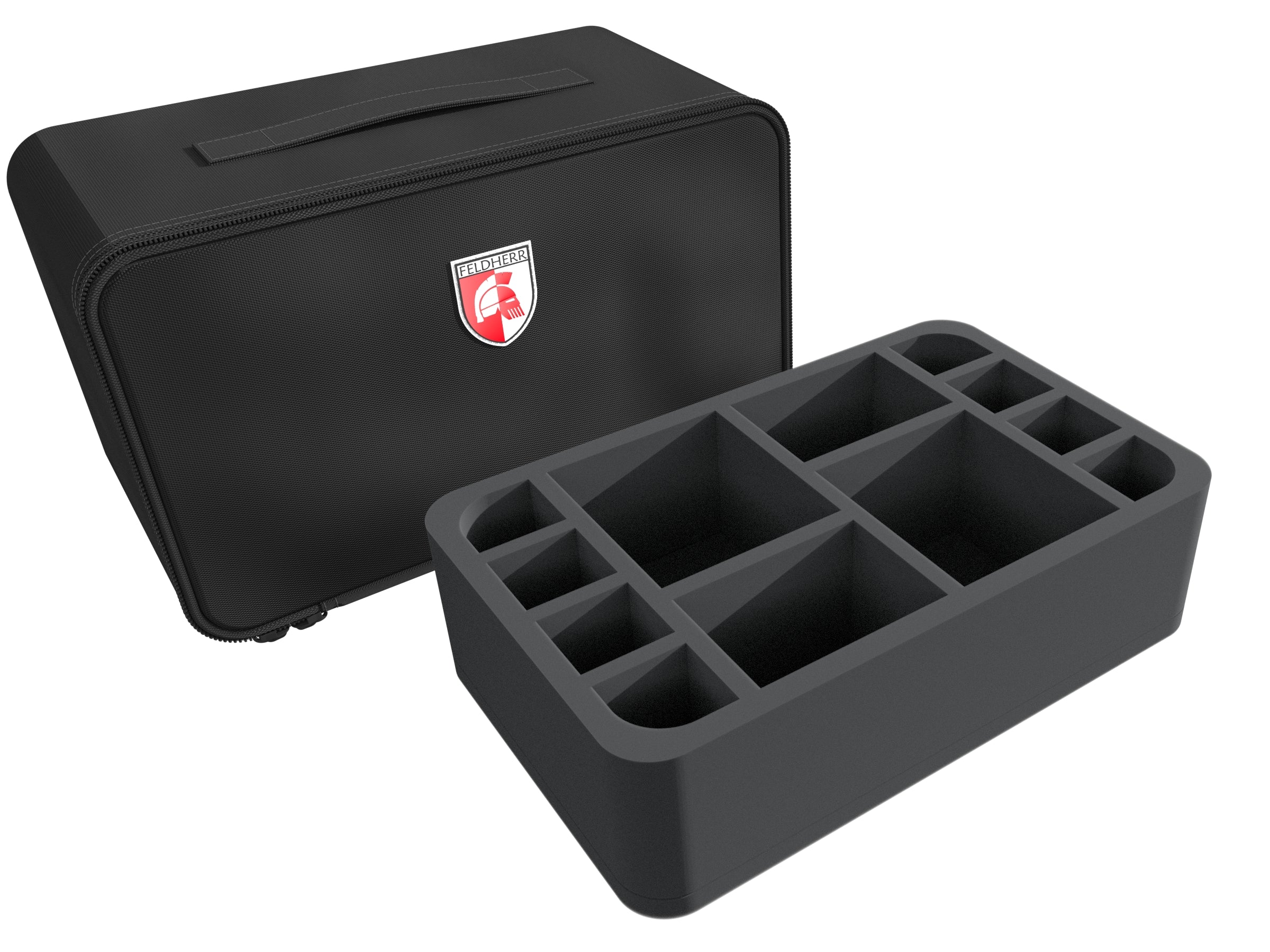 - 1 Half-Size foam tray with 12 compartments each for large and normal-sized miniatures + game materials (HSCW075BO)