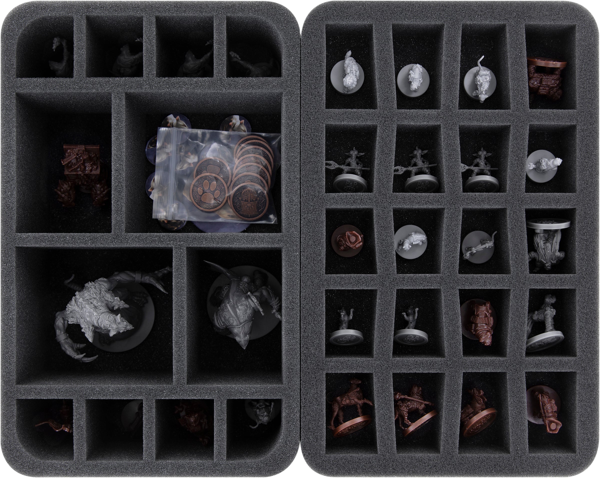 Thanks to the custom-fit cut, the miniatures have a tight fit. Even if the transport gets a little bumpy, the pawed heroes remain on the spot and do not move. The soft, fine-pored foam protects against broken and bent limbs and a threatening letter from PETA. At the same time, the colors of your painted models are spared from scratches and paint abrasion.
