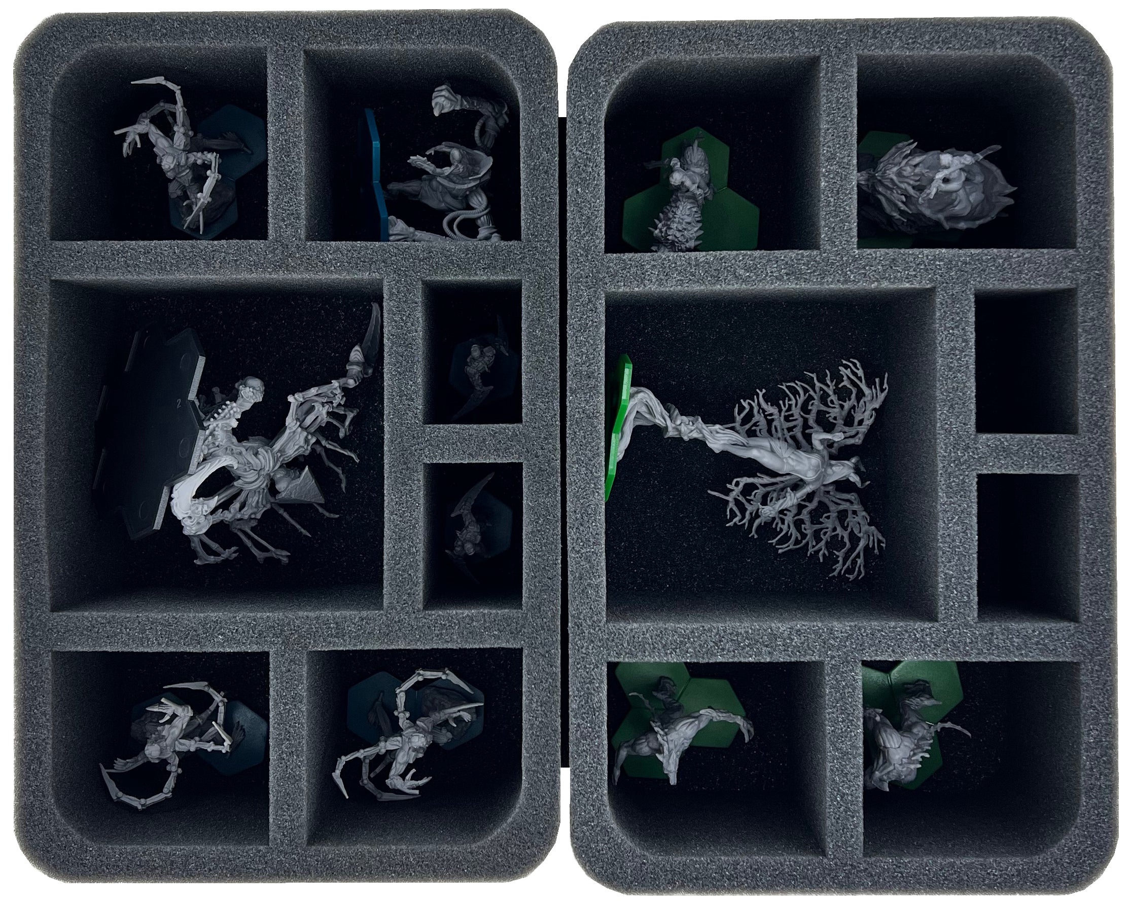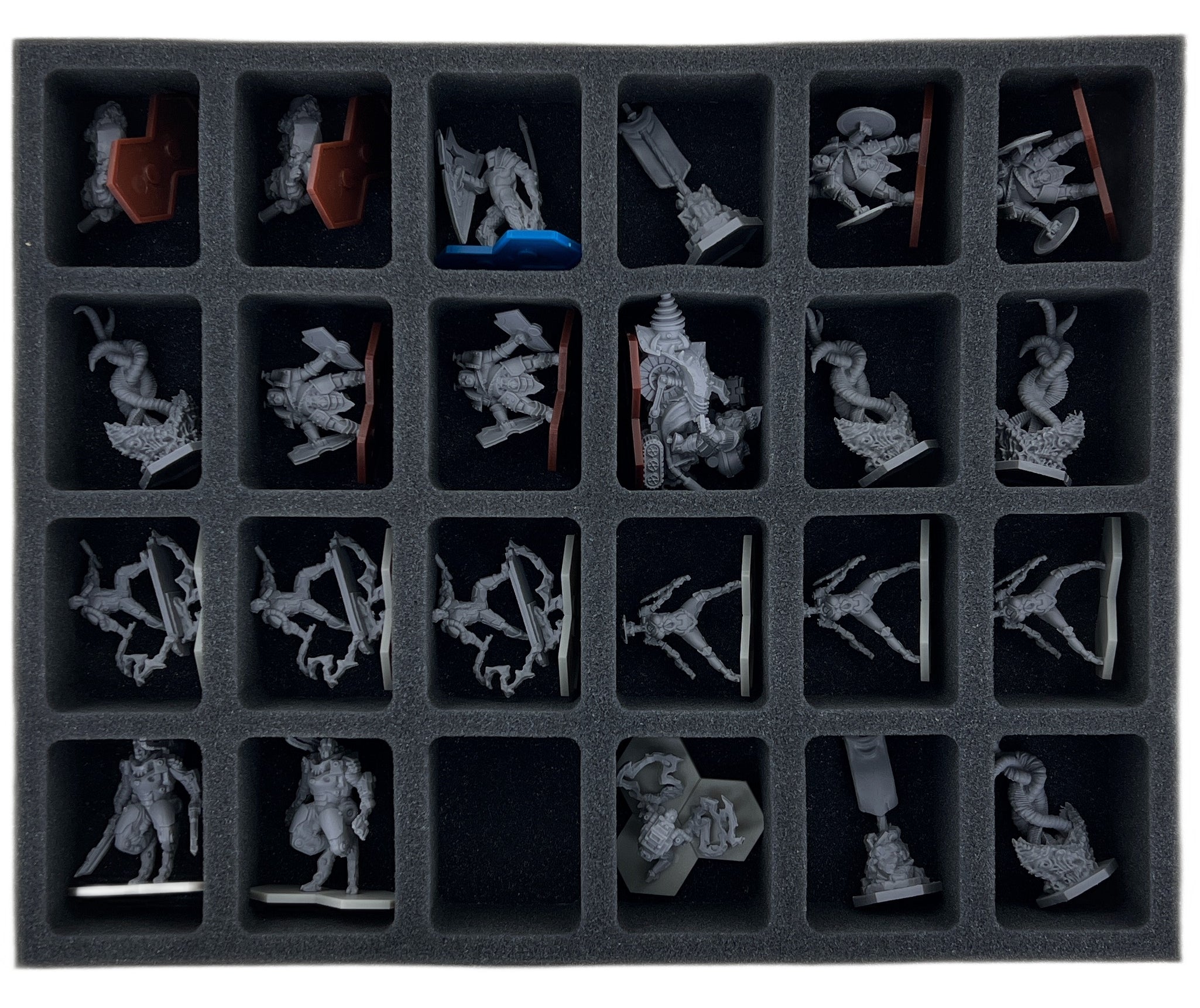 - 1 foam tray with 24 compartments for bulky models like Holy Knight, Flame Keeper, Unbroken, Drillers, Stream Guard, Stream Surfer, Source Blade + Artifact Miniatures (FSMFEV050BO)