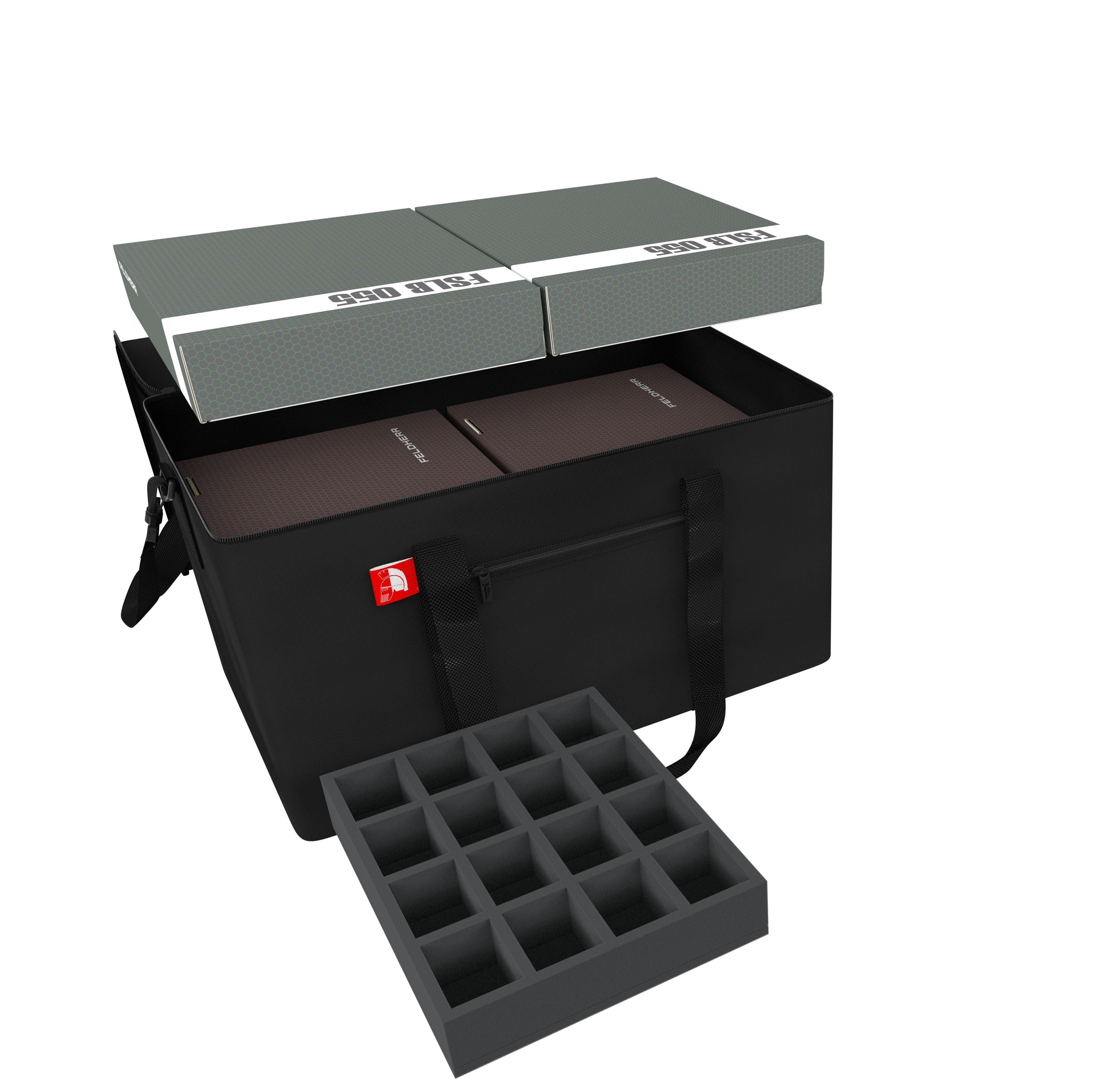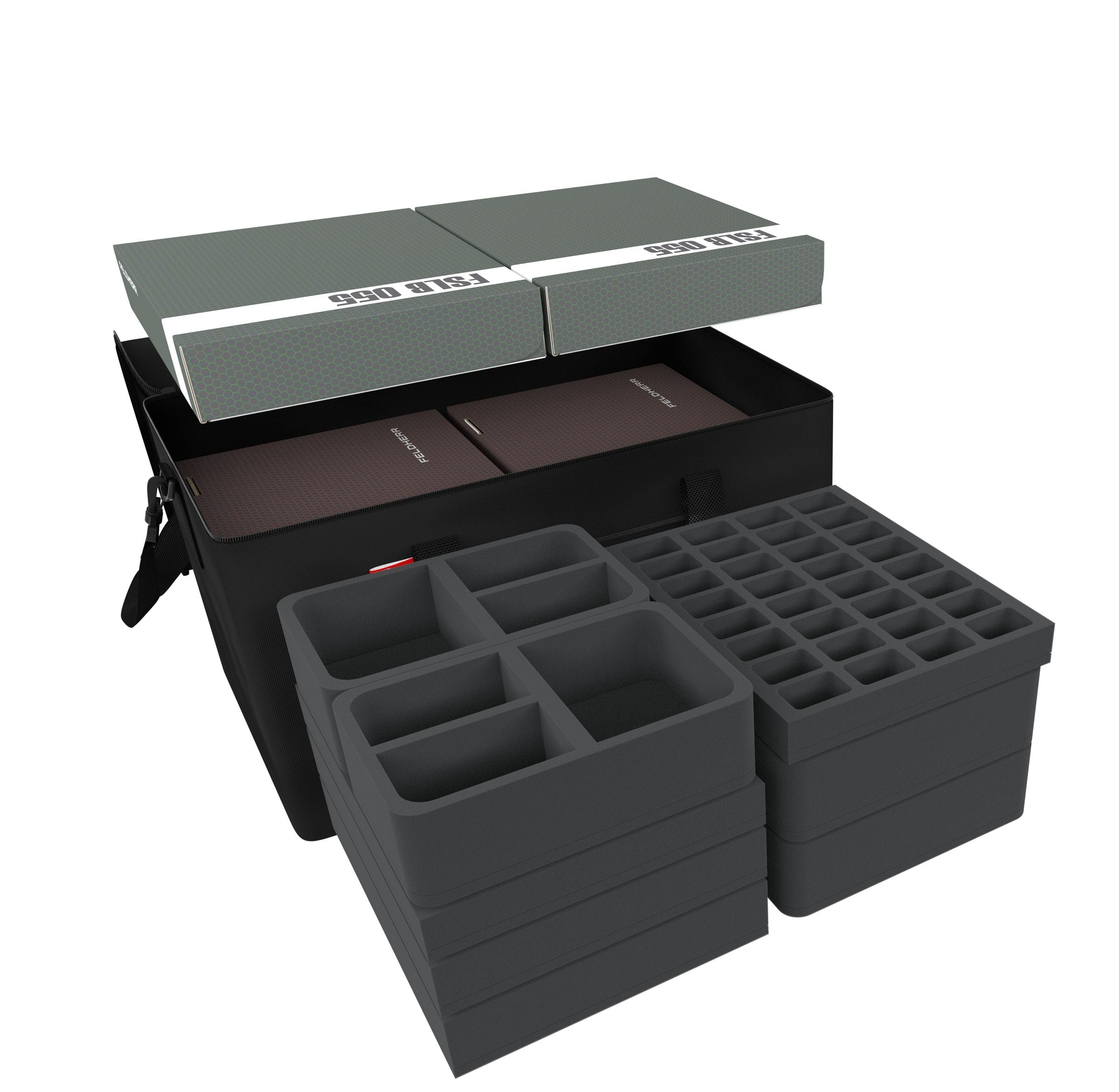 The included foam toppers ensure that miniatures and game materials are well protected from all sides and cannot fall out of the compartments.