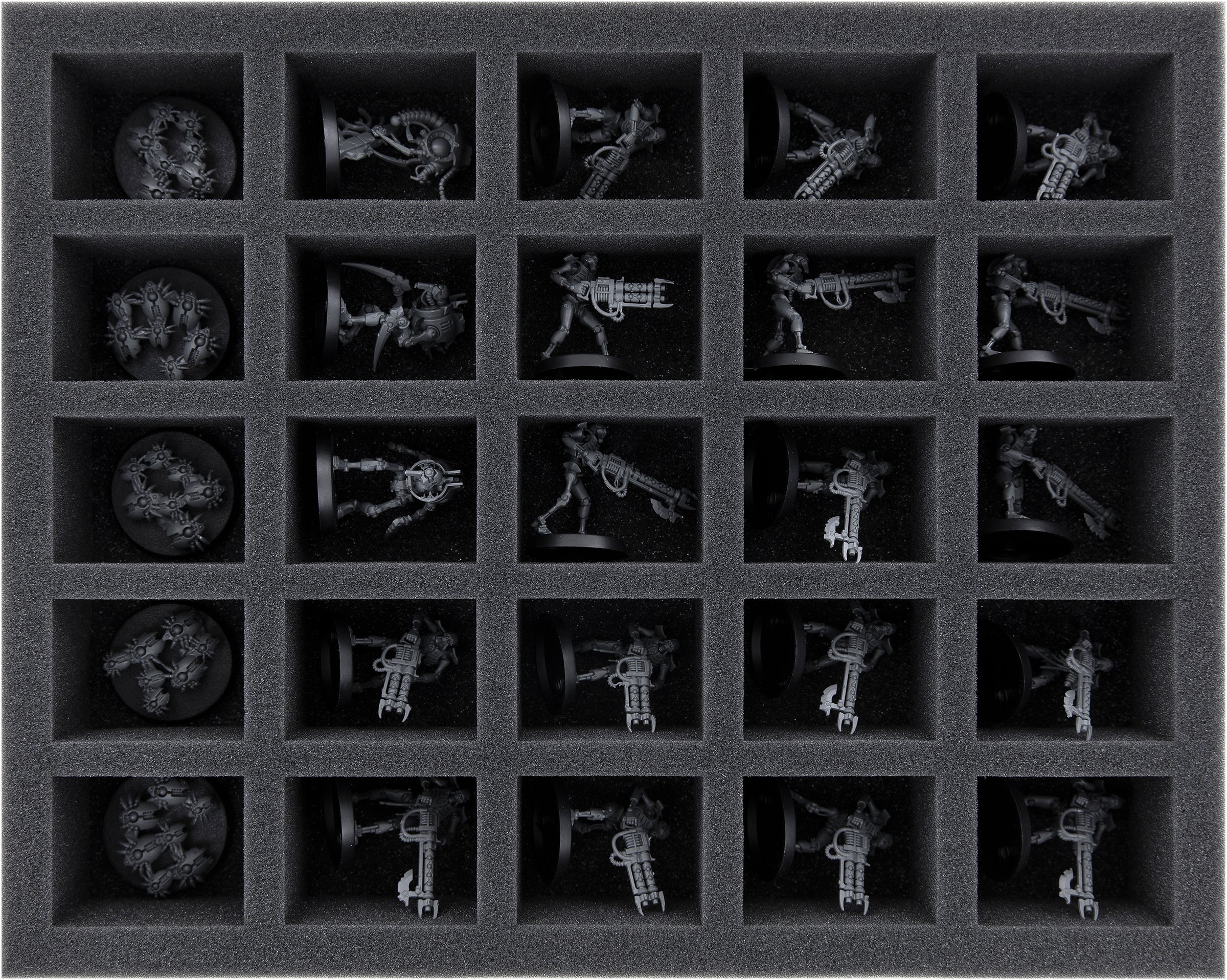 Cryptothralls and Necron Warriors find a safe hiding place in the 25 compartments of the Full-Size mat FSLQ050BO.