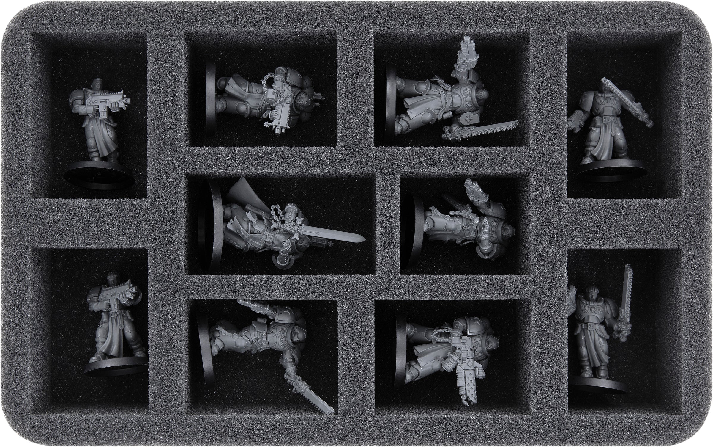 - 1 Half-Size foam tray for 1 Black Templars Primaris Crusader Squad – including: 1 Primaris Sword Brother, 5 Primaris Initiates and 4 Primaris Neophytes (HSLM050BO)