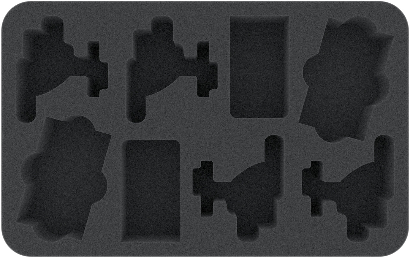 Especially for the Star Wars Armada Wave III foam tray. There is enough space to store 4 Imperial Assault Carriers (Gozanti) and / or Rebel Transports Flotillas (compartments can also be used for Wave 2 Imperial Raider and / or Wave 1 CR90 Tantive!). In addition, there is enough space for 4 bases, standard size, Star Wars Armada Star Ships with base, Command and Speed Dials