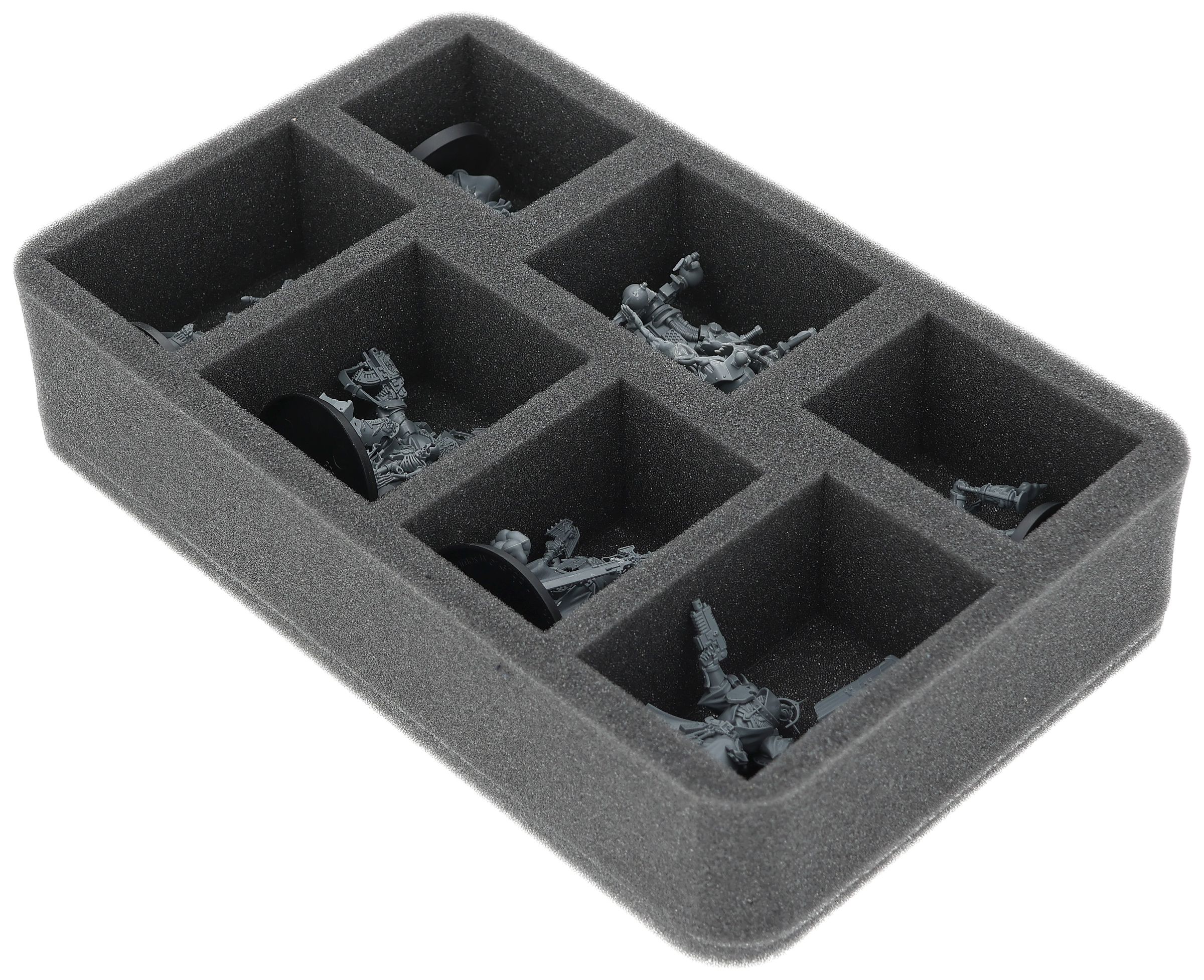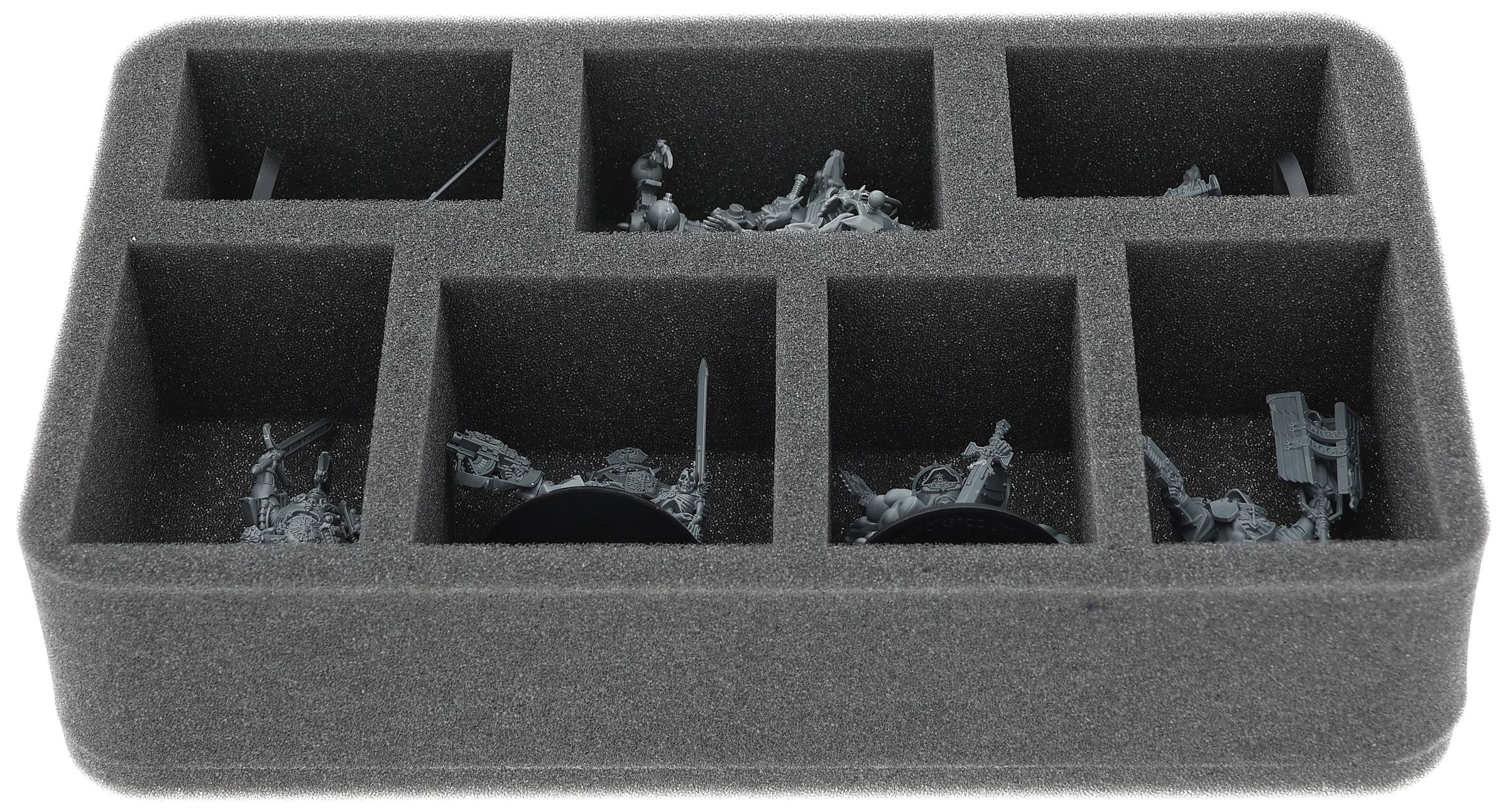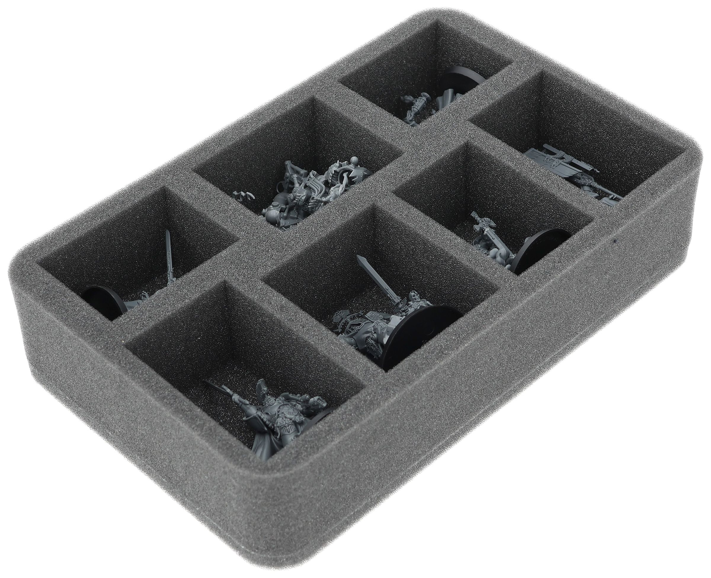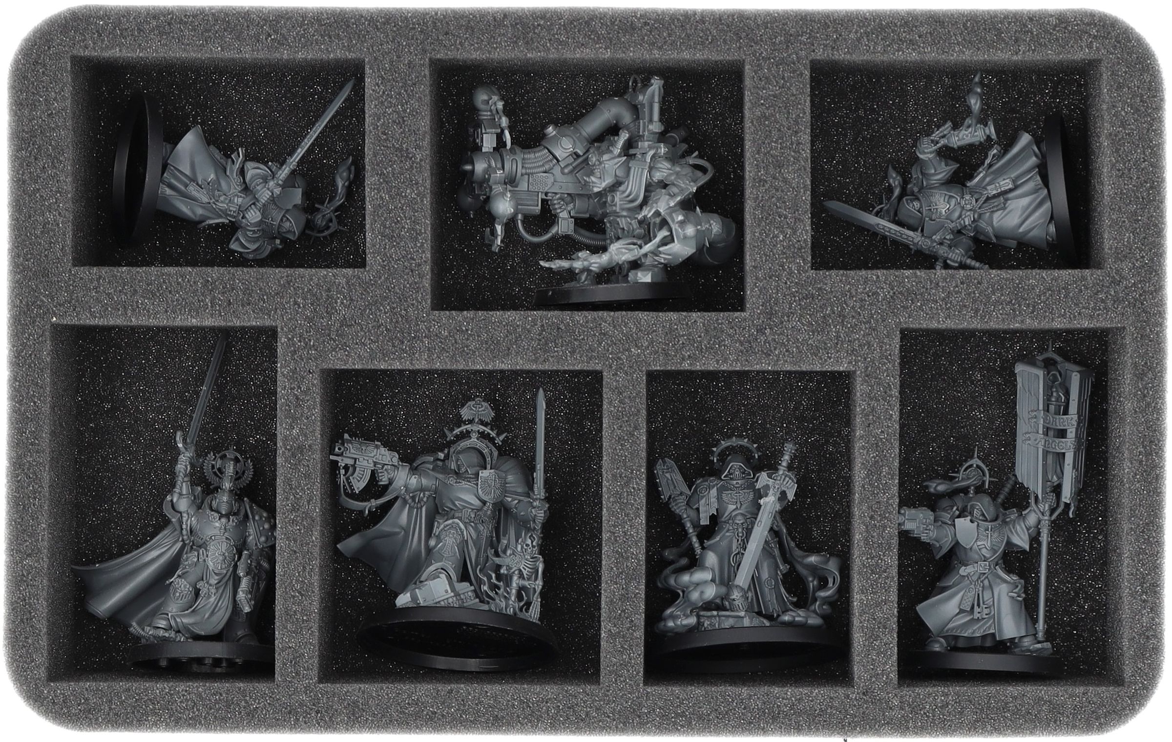 On this Feldherr foam tray you have space for up to 7 miniatures of your army. The insert is especially suitable for storing the Belial, Grand Master of The Deathwing, Asmodai, Master of Repentance, Inner Circle Companions and similar sized models.