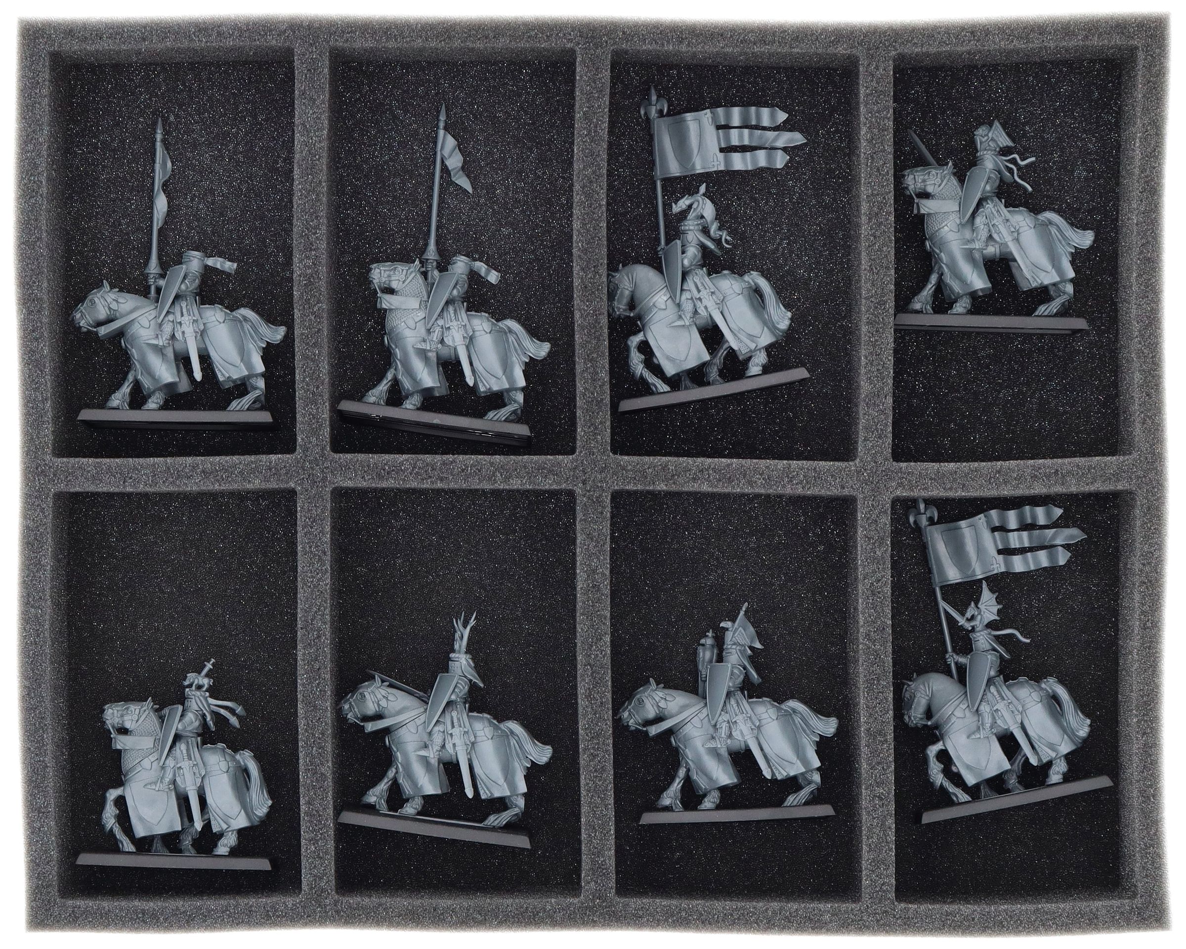 This Feldherr foam tray provides space for up to 8 miniatures from your army. The insert is particularly suitable for storing cavalry units like Knights of the Realm/Knights Errant and models with similar dimensions.