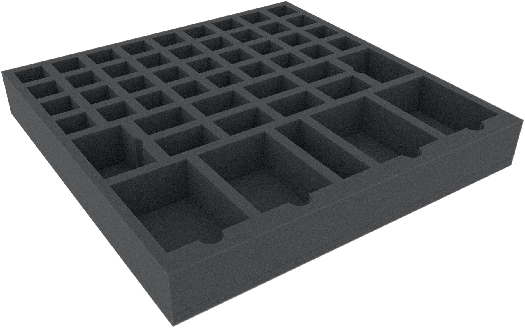 This foam tray has 51 compartments for the safe and orderly storage of miniatures, cards, dice and tokens.