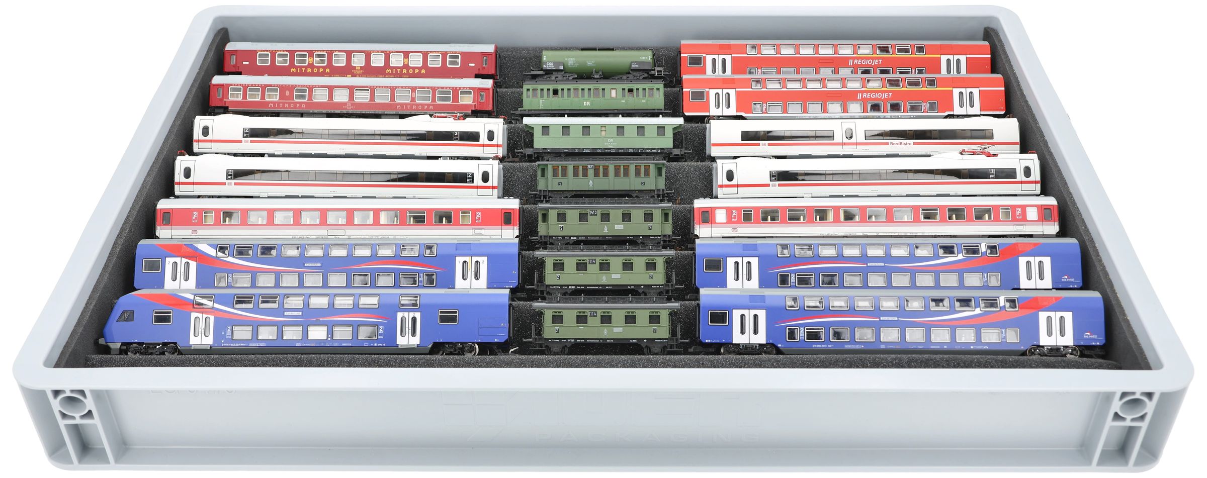 Your model railroad collection is stored absolutely safely in the robust Euro container from AUER Packaging made of shock-resistant and dimensionally stable plastic.