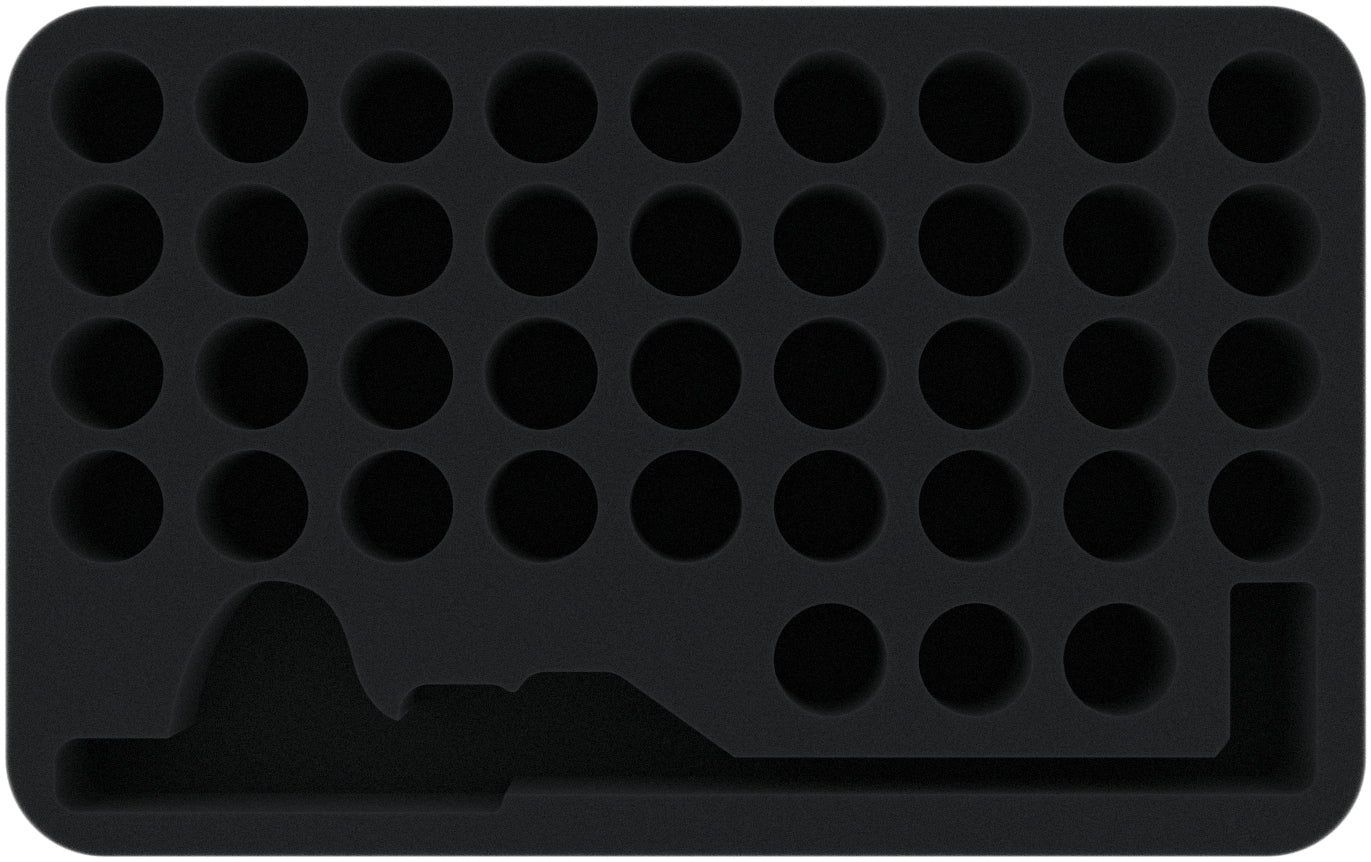 With the matching foam topper, all miniatures are packed securely and ready for transport. So the next tournament can come.
